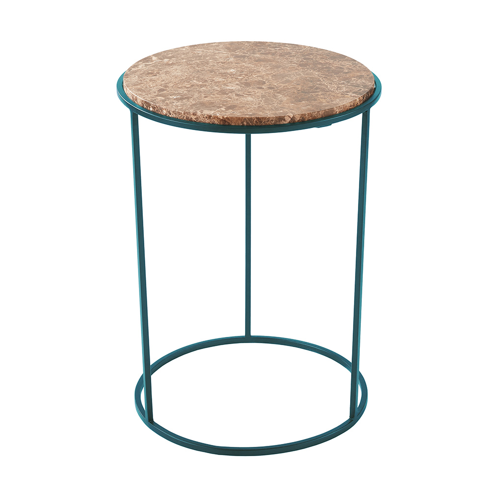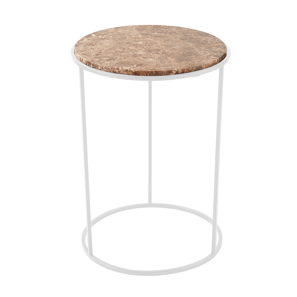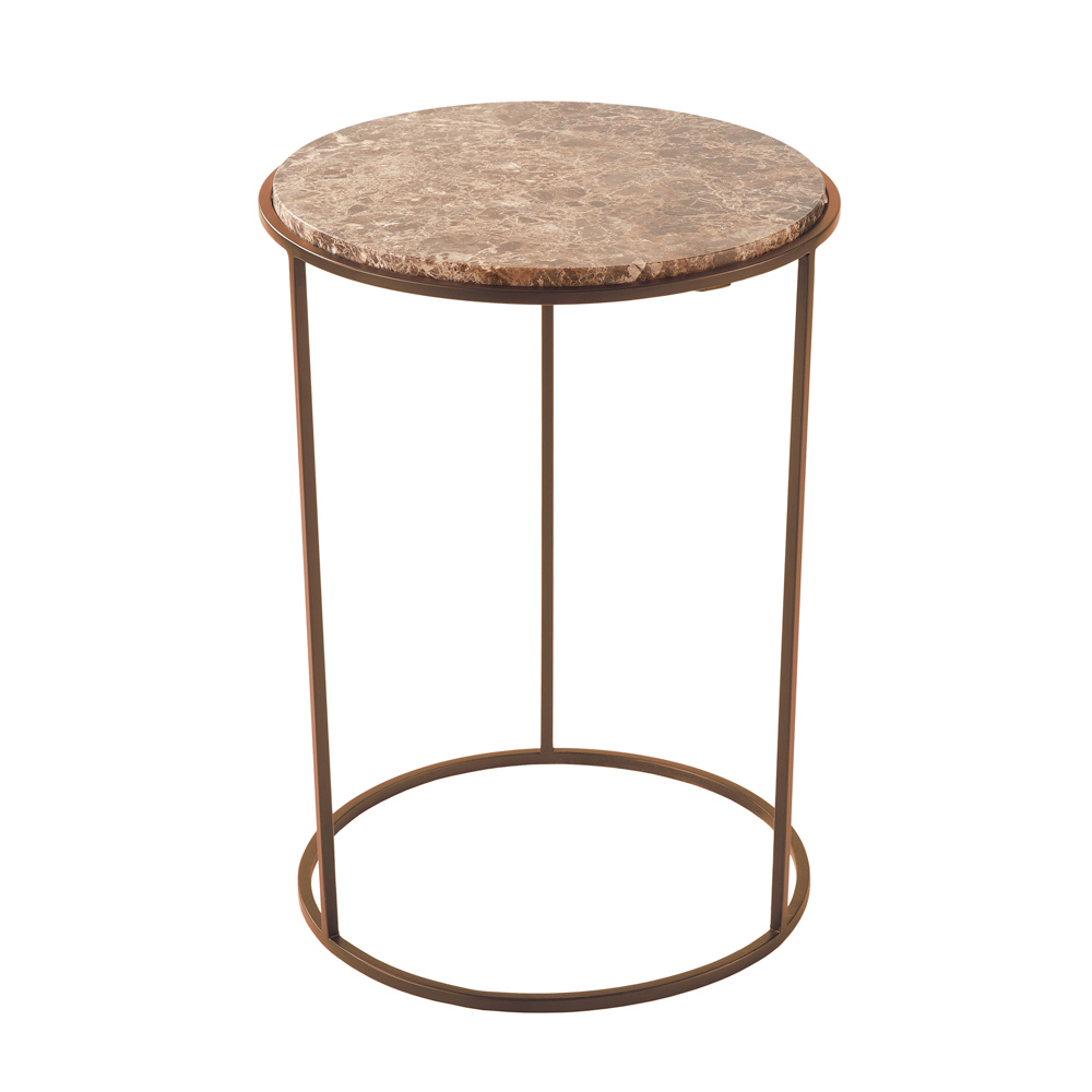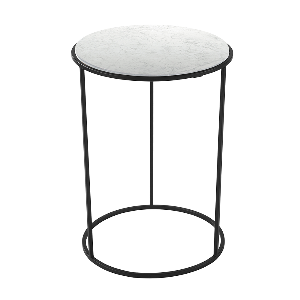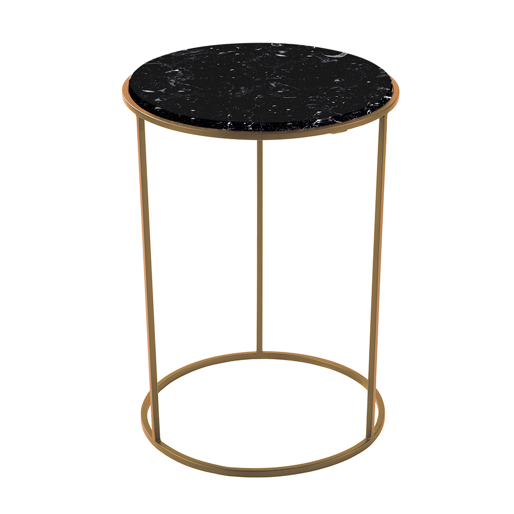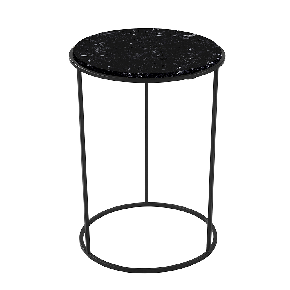 table basse ronde avec plateau en marbre opaque, disponible en trois variantes différentes, présente des lignes minimales et essentielles. Le