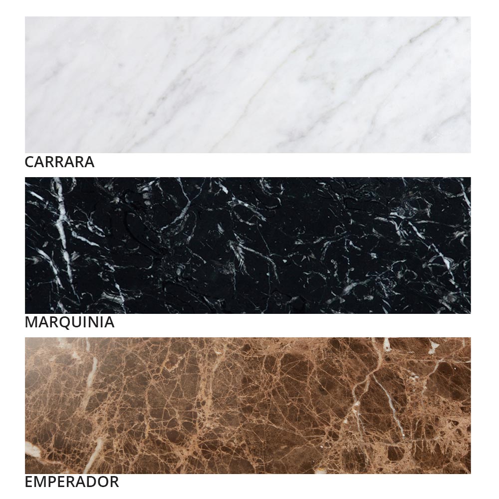 Finitions disponibles pour le plateau en marbre:- Marquinia noir