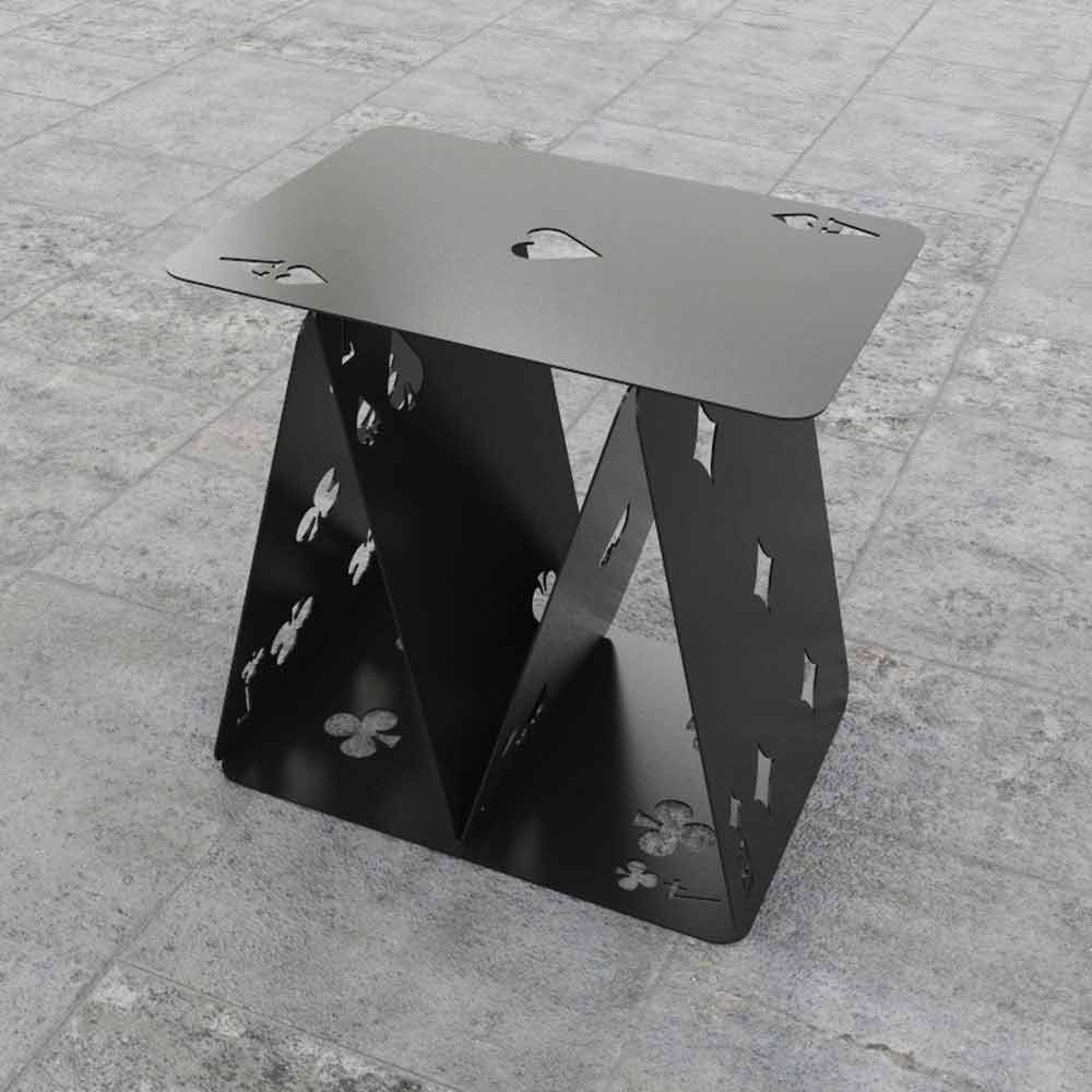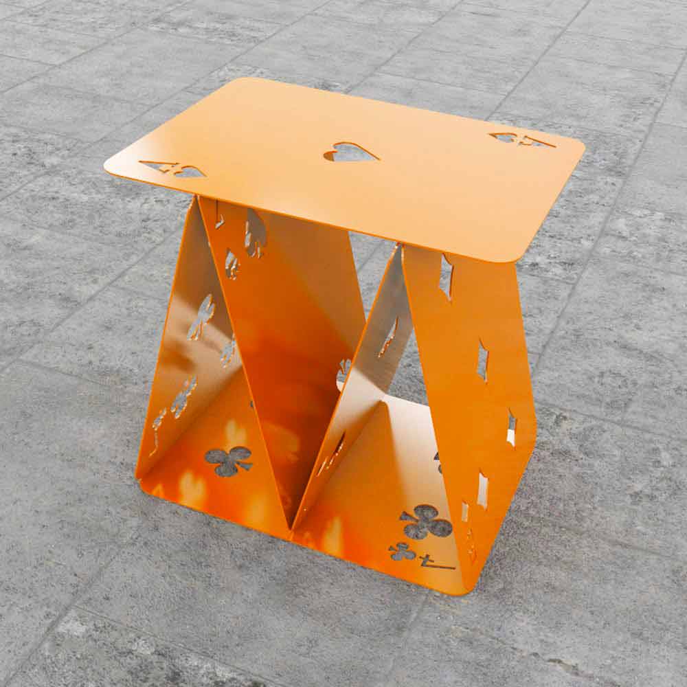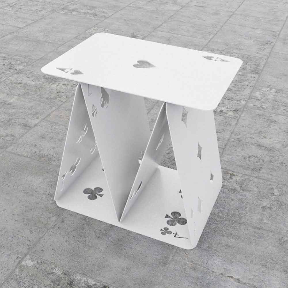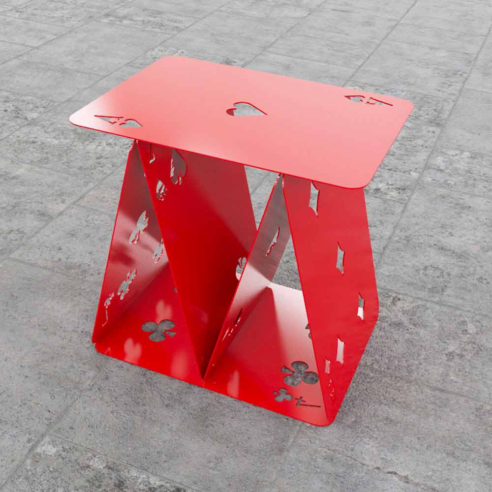 Six cartes à jouer en métal qui, disposées comme un château de cartes, forment un tabouret drôle. ComeQuandoFuoriPiove prend son nom d'un jeu de mot italien, utile pour se rappeler touts le noms des signes des cartes à jouer: C (comme "cuori", cœur), Q (comme "quadri", carreau), F (comme "fiori", trèfle) et P (comme "picche", pique).
