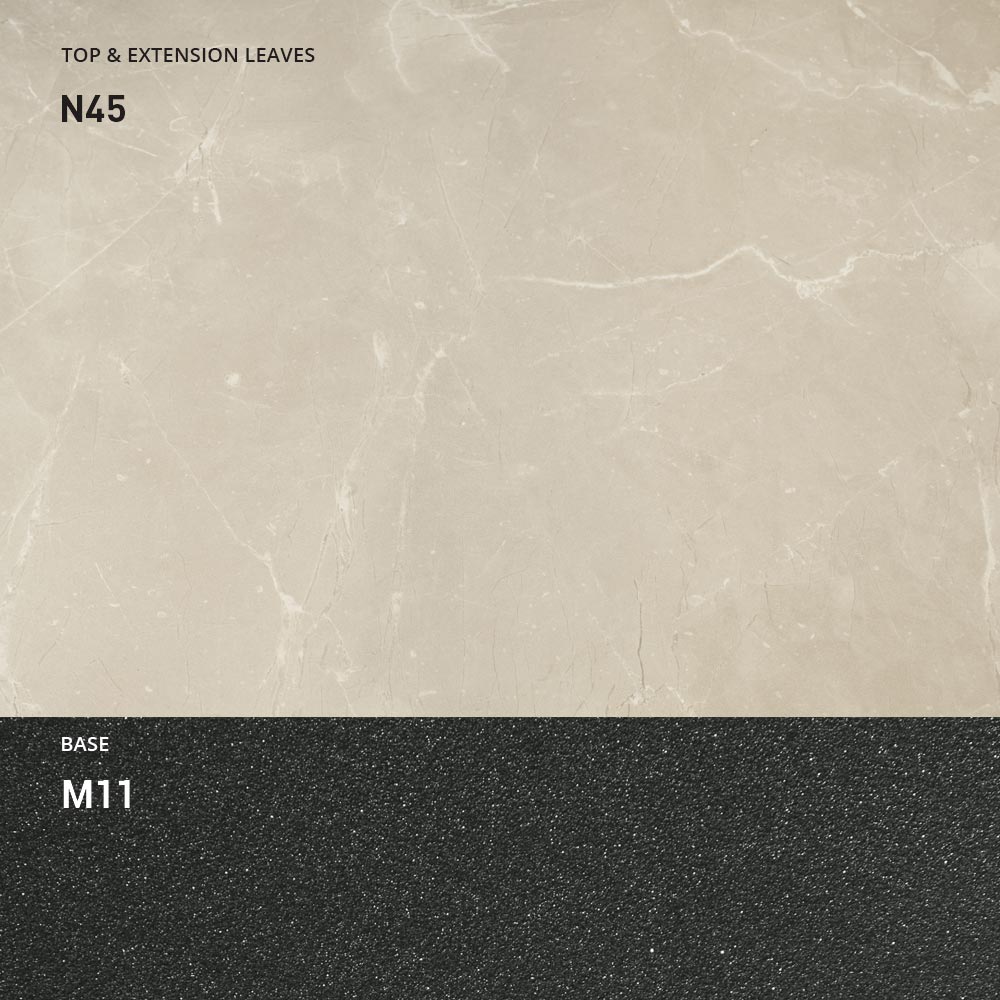Le plateau est disponible en mélaminé, laqué, plaqué bois et effet mortier dans une large gamme de finitions.