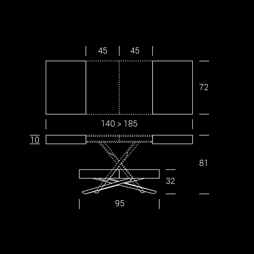 NB : lors de l'ouverture de la table il faut soulever la rallonge, la positionner au niveau du plateau et, ensuite seulement, l'ouvrir.