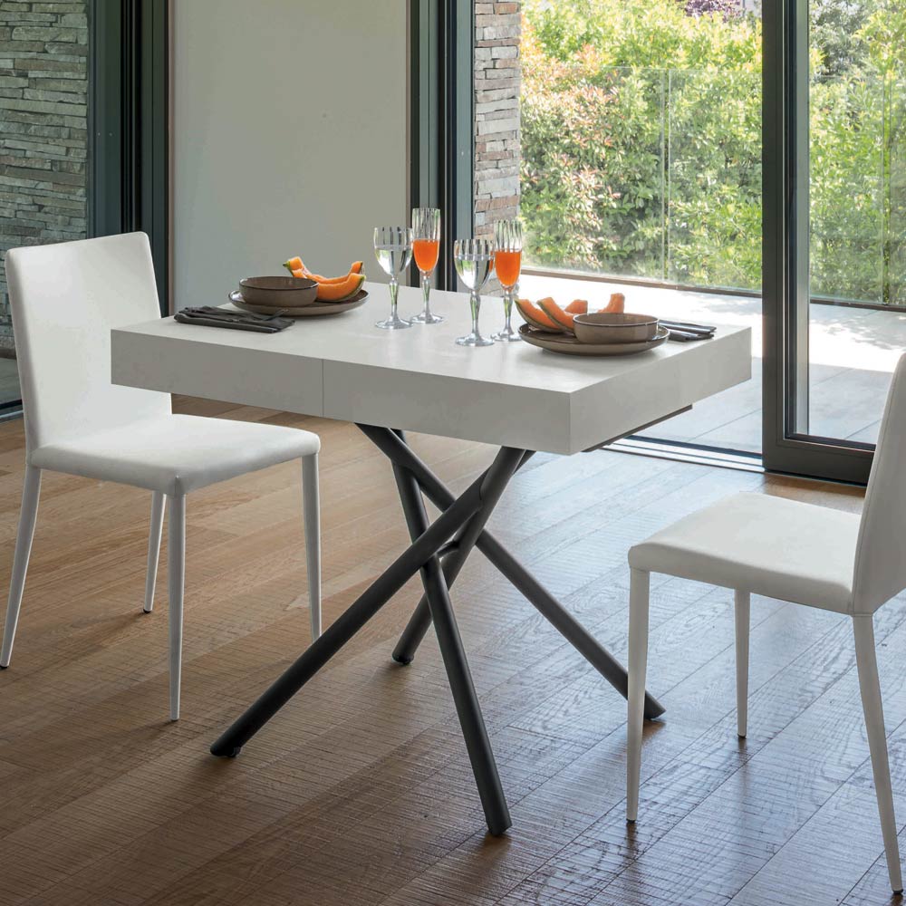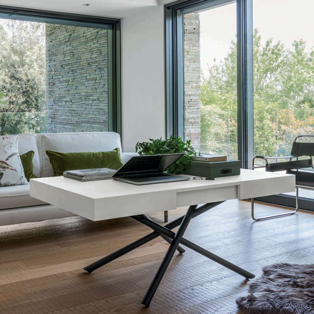 Table basse transformable en bois mélaminé et métal Made in Italy.
