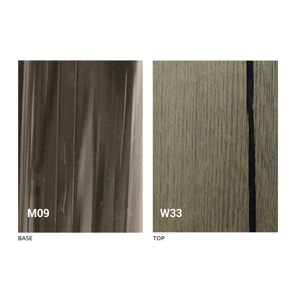 Le plateau et la base de la table peuvent être personnalisés avec différentes finitions d'échantillons. Pour plus d'informations, contactez-nous via le formulaire "