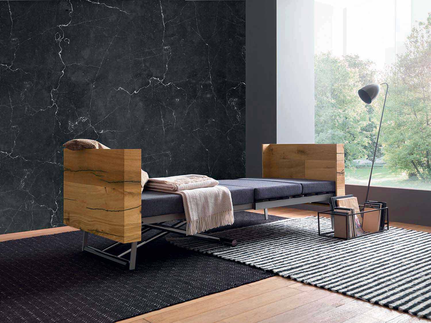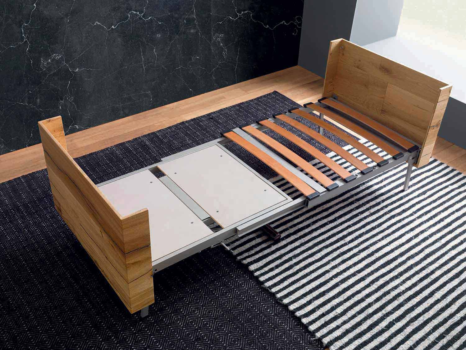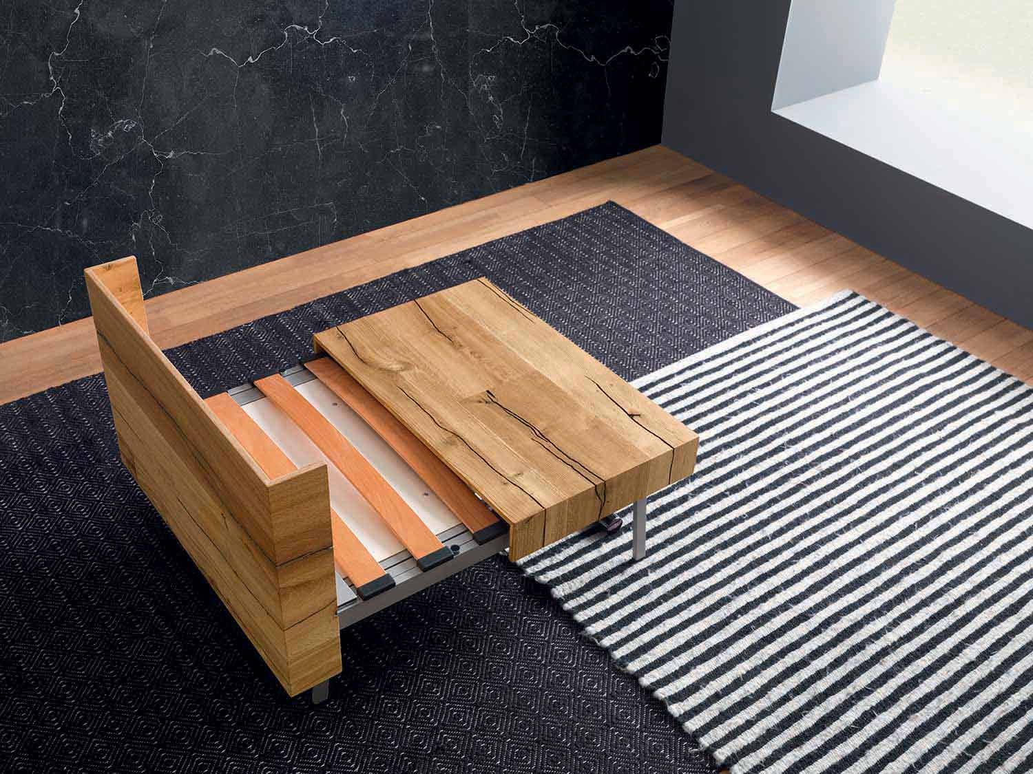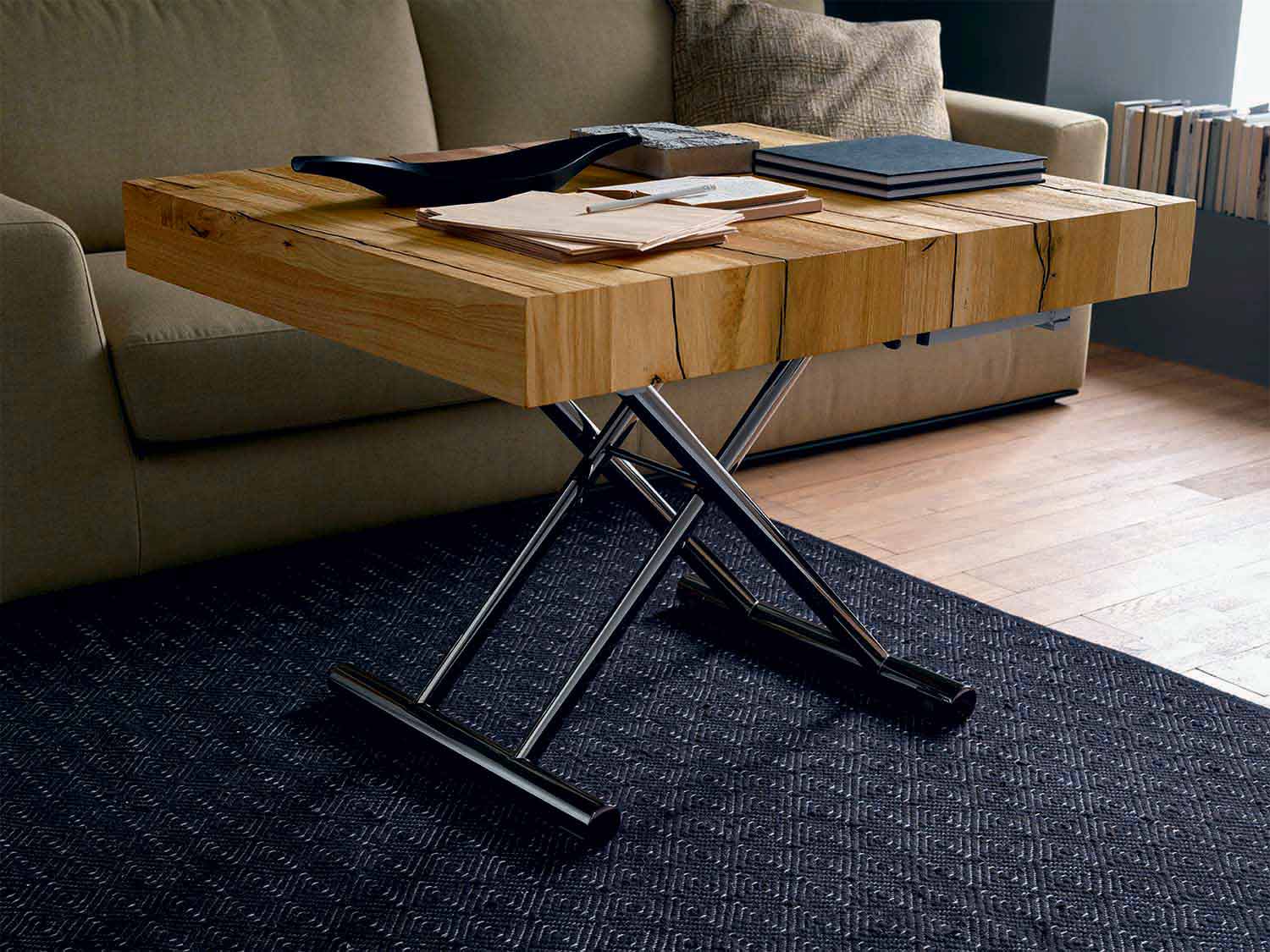 Table basse moderne en bois massif et métal convertible en table à manger ou en lit Made in Italy.