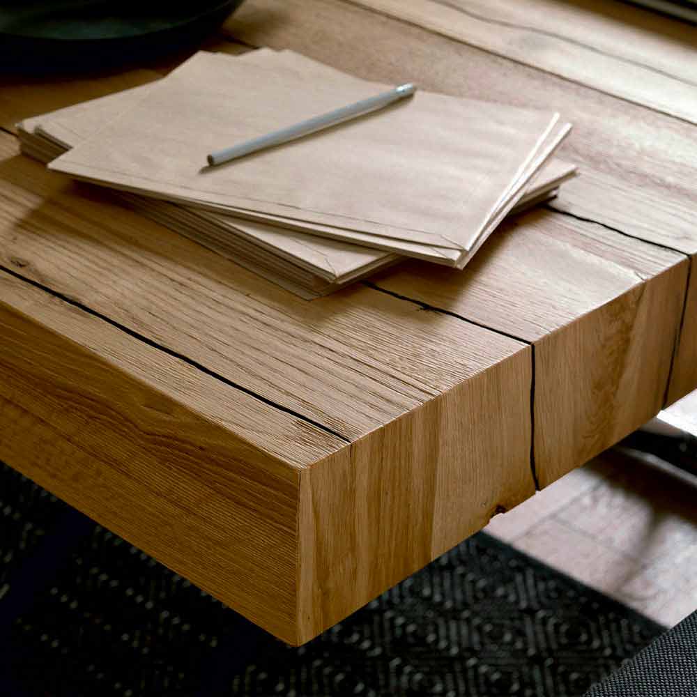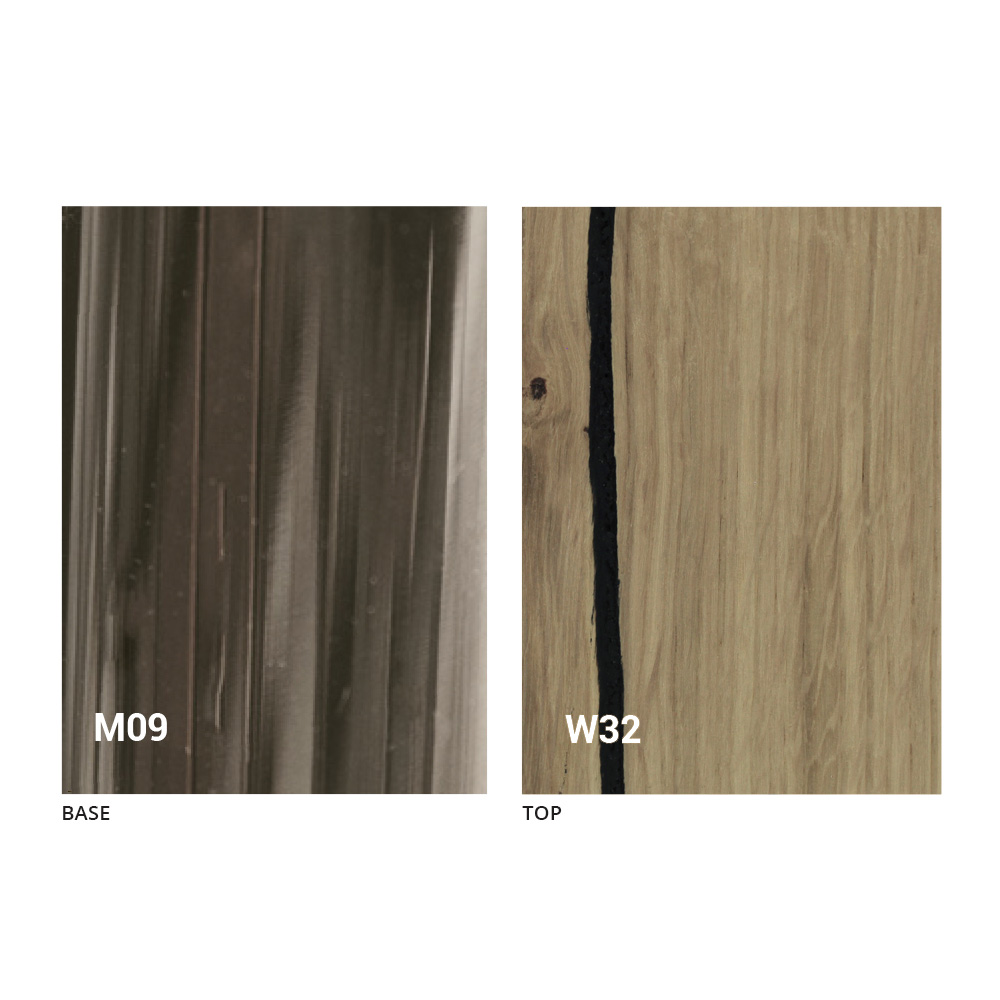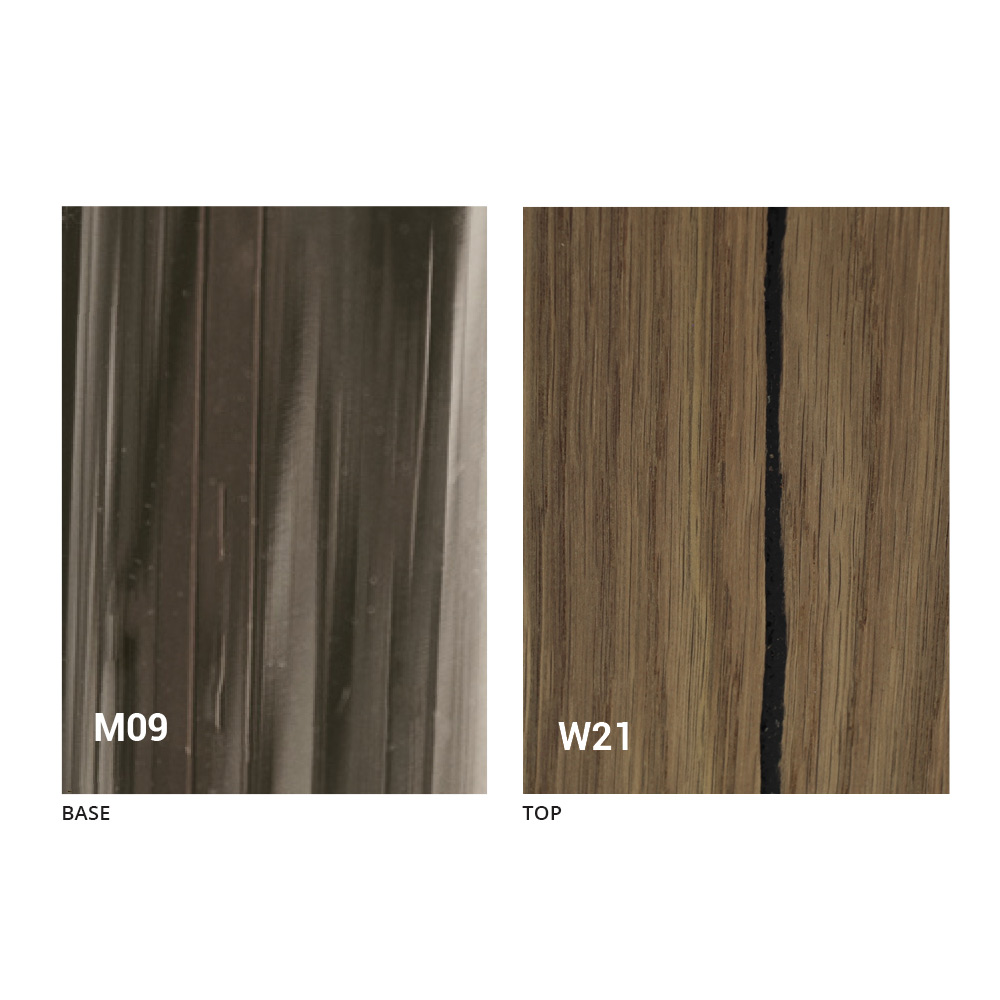 Le plateau en bois massif est disponible dans les finitions :- vieux chêne massif traité thermiquement;
