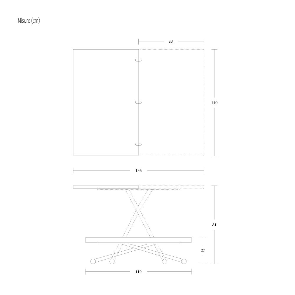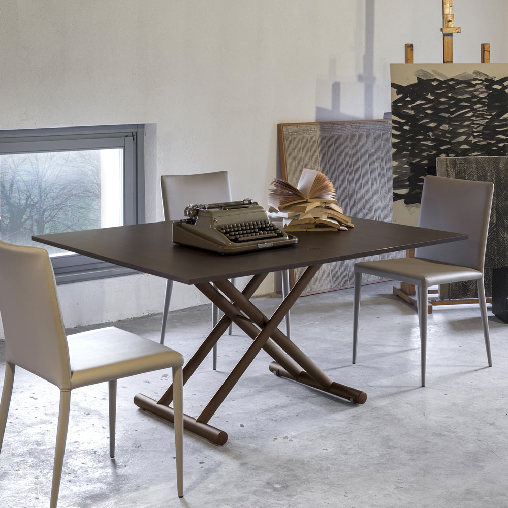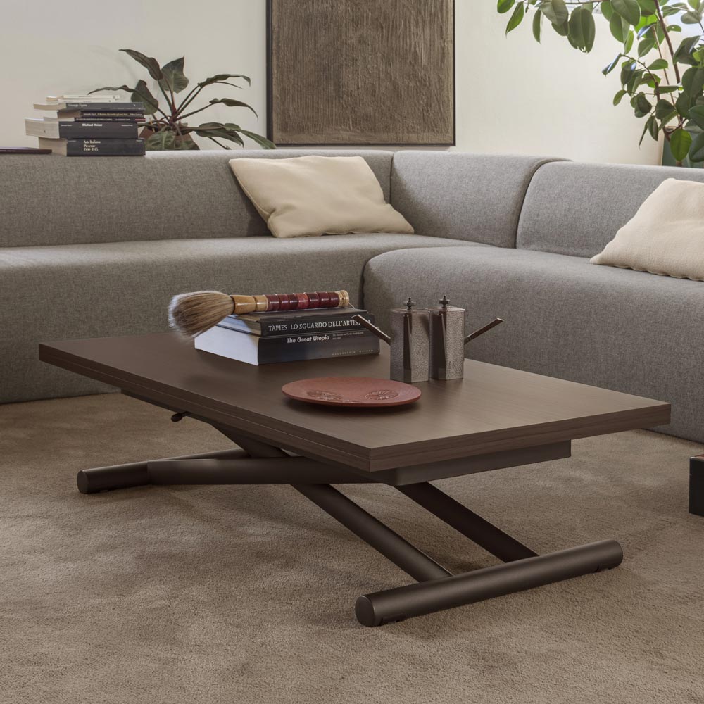 Table basse transformable en bois mélaminé et métal Made in Italy.