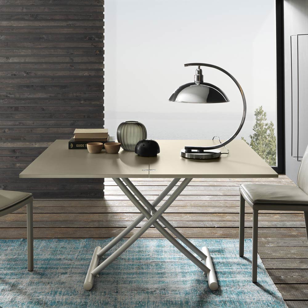 Table basse transformable avec plateau en céramique mate Made in Italy.
