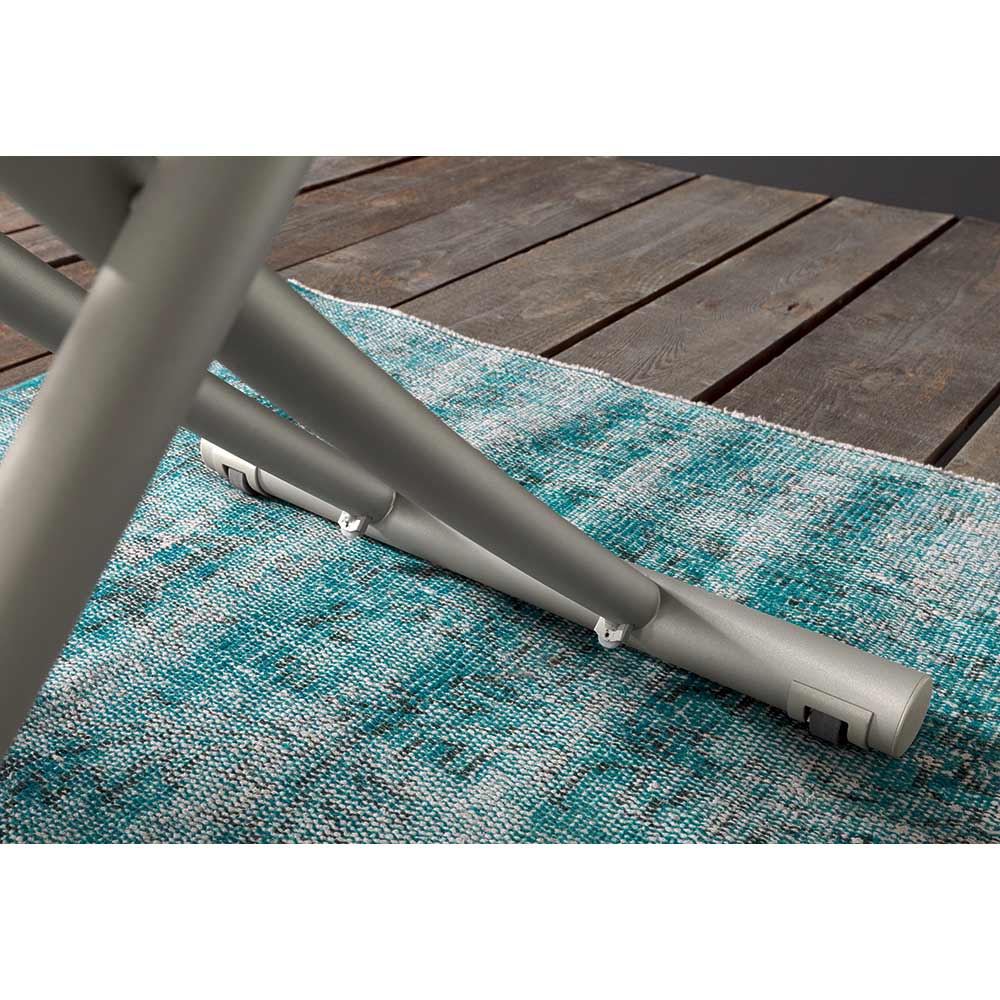 métal verni gris gaufré avec des roues transversales escamotables. Caractérisé par