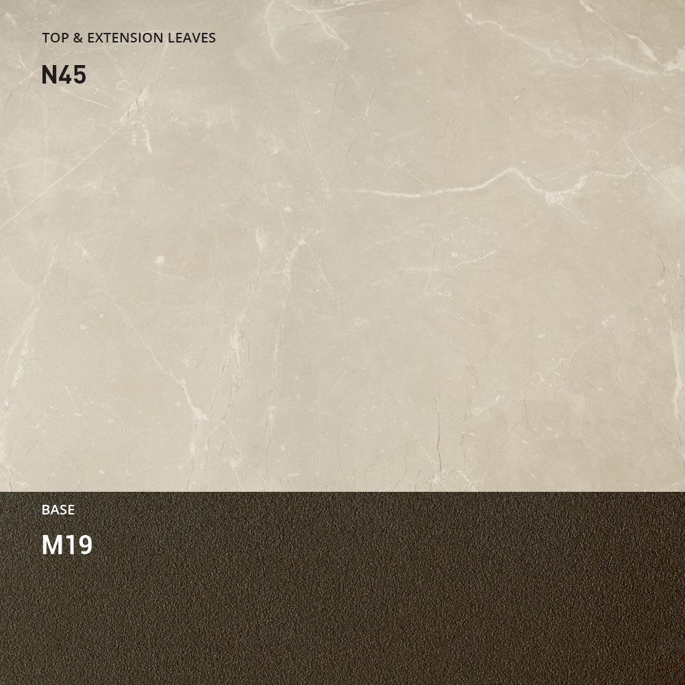 Le plateau est disponible en mélamine, céramique mate, verre et effet mortier dans une large gamme de finitions.