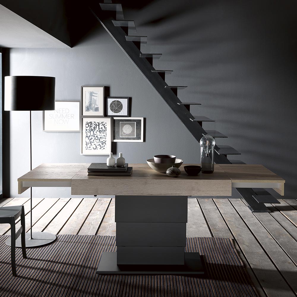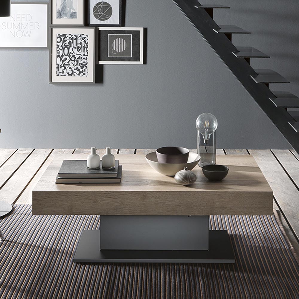 Table basse convertible en bois et métal Made in Italy.