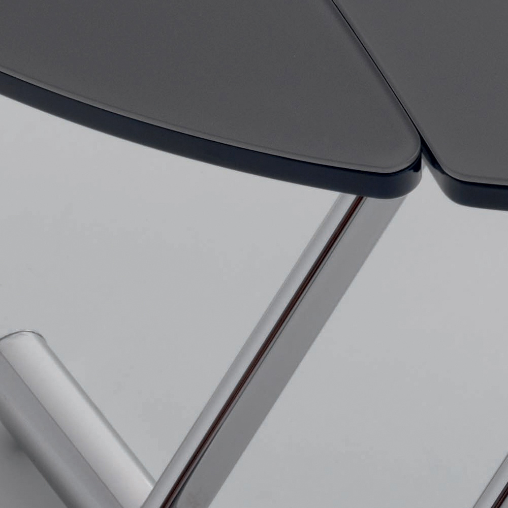 Table basse convertible, base en métal et plateau en verre, design made in Italy.