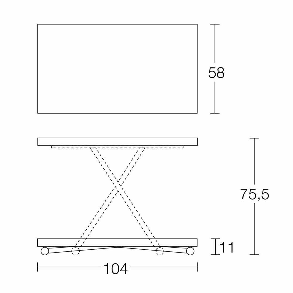 table basse en table de salle à manger ou de cuisine via un mécanisme à gaz réglable en hauteur au millimètre près de 11 cm à 75,5 cm.