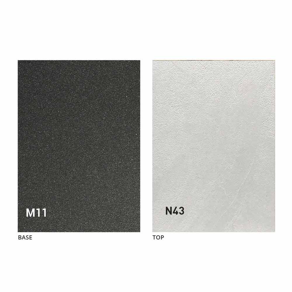 Le plateau et la base de la table peuvent être personnalisés avec différents matériaux et finitions d'échantillons ou laquage RAL. Pour plus d'informations, contactez-nous en utilisant le formulaire "