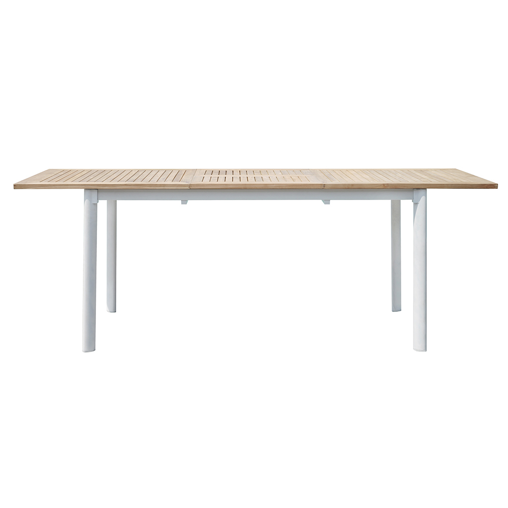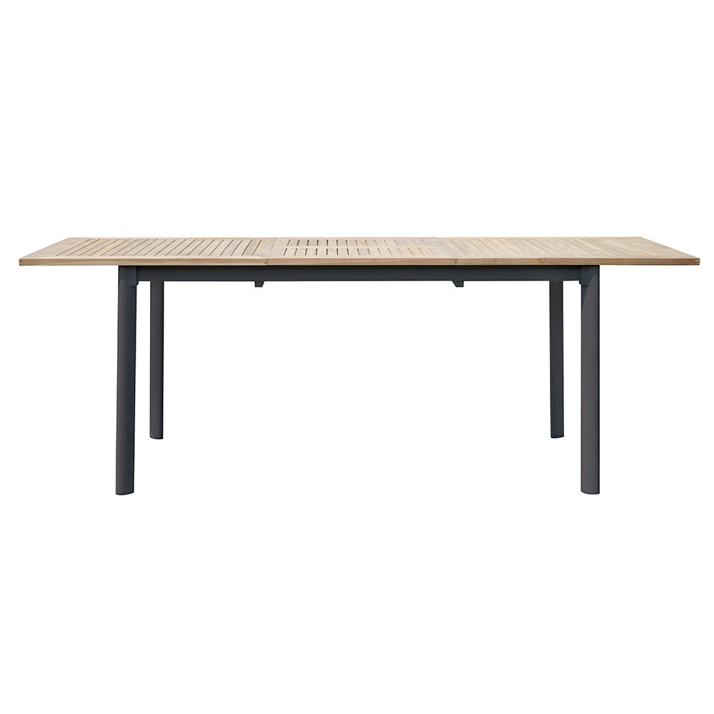 La table est extensible , vous permettant de l'adapter facilement à vos besoins, que vous organisiez un dîner intime ou un grand déjeuner entre amis ou en famille. La combinaison du teck et de l'aluminium est non seulement esthétique, mais aussi extrêmement pratique, faisant de cette table un choix idéal pour toute occasion extérieure.