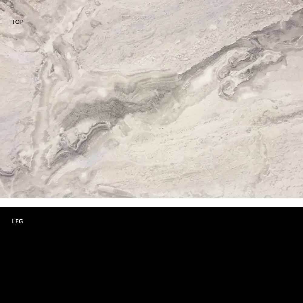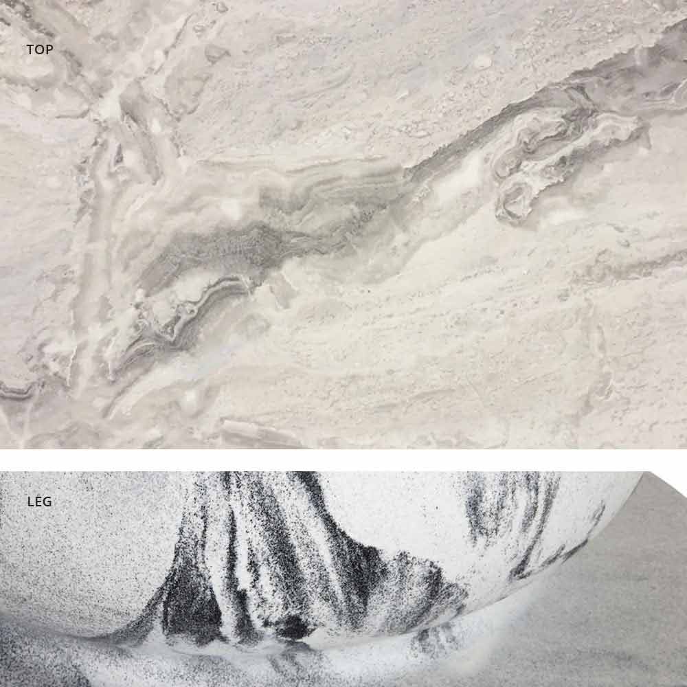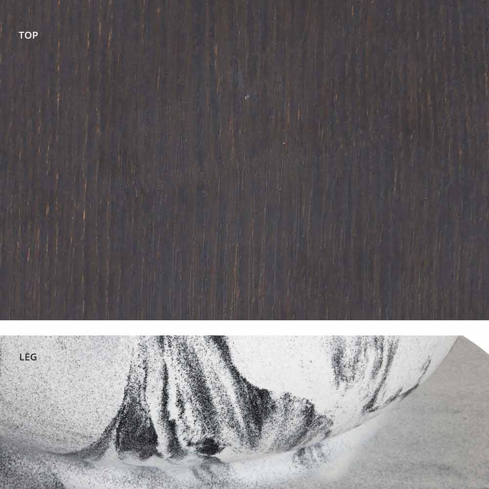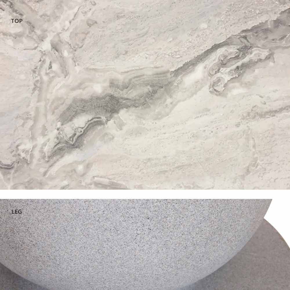 base gris éléphant et plateau bois/ardoise/ciment/calacatta.