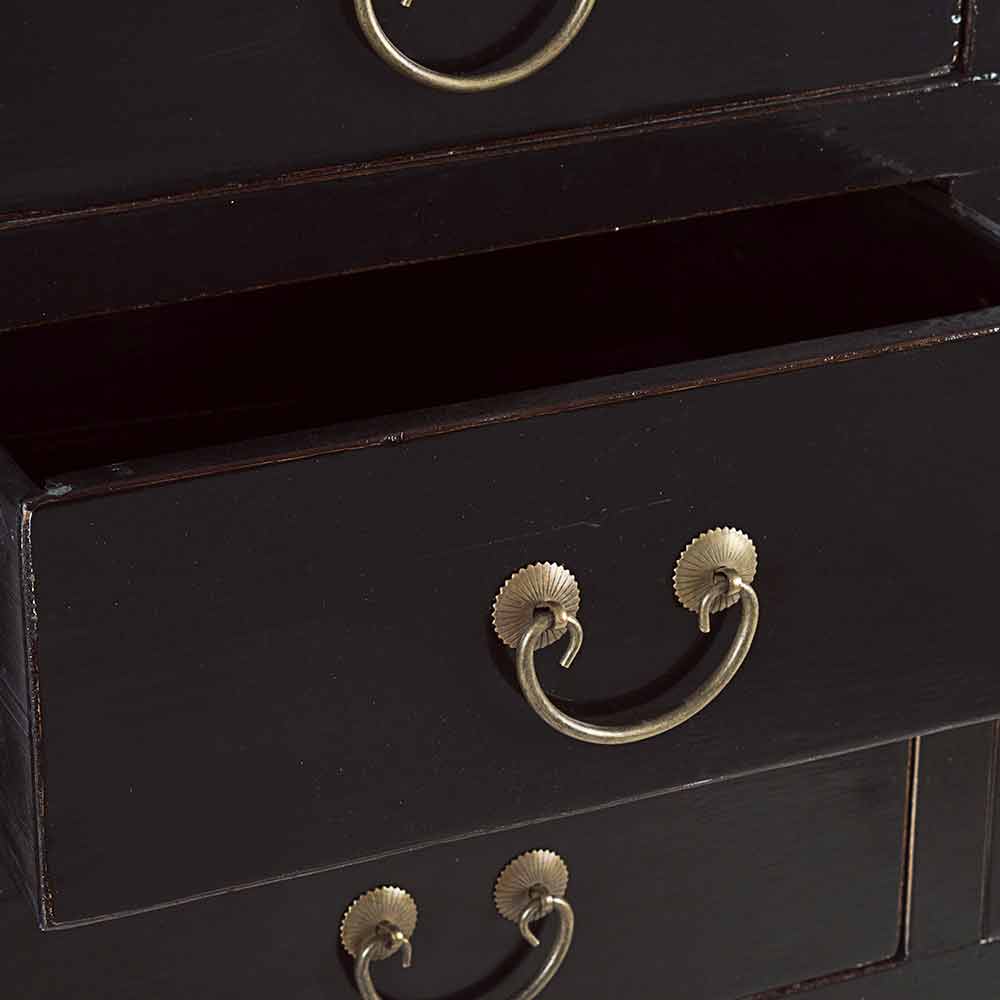 Table Console Design Vintage en Bois d'Orme Noir 5 Tiroirs Homemotion - Sonten