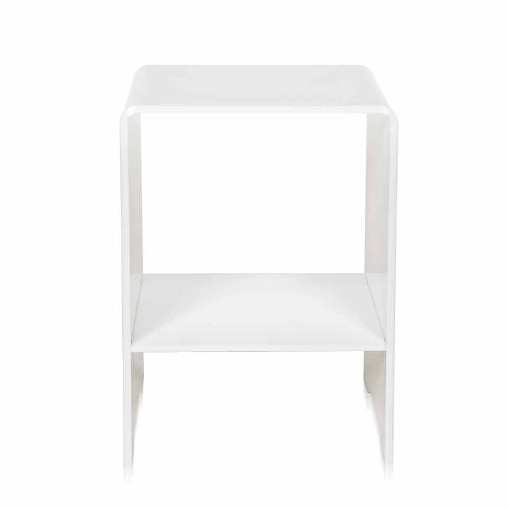 À côté du lit comme table de chevet, ou bien à côté du canapé comme table basse ou encore à côté de la baignoire comme rangement pour serviettes et produits de beauté: cette table d'appoint éclectique, de 10mm d'épaisseur, est réalisée en plexiglas blanc de polymère 100% vierge, façonné au laser et modelé à haute température. Mimi dispose d'une structure autoporteuse.
