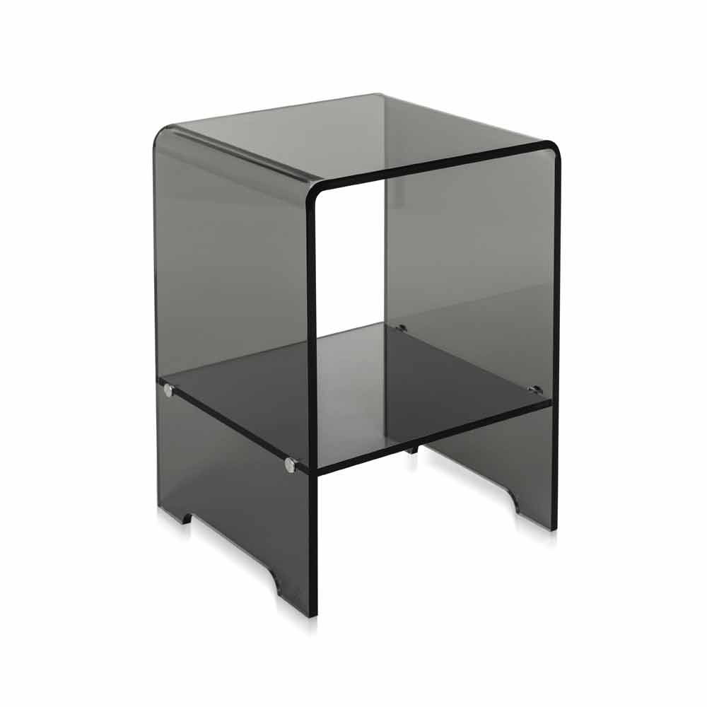 À côté du lit comme table de chevet, ou bien à côté du canapé comme table basse ou encore à côté de la baignoire comme rangement pour serviettes et produits de beauté: cette table d'appoint éclectique, de 10mm d'épaisseur, est réalisée en plexiglas fumé transparent de polymère 100% vierge, façonné au laser et modelé à haute température. Mimi dispose d'une structure autoporteuse.
