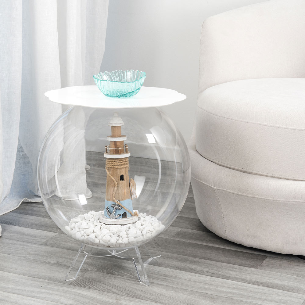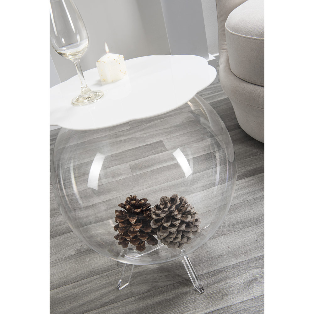 Table d'appoint/de rangement en plexiglas avec structure sphérique qui peut servir de pot pour les fleurs, d'acquarium ou, tout simplement, de boîte pour y ranger les jeux des enfants ou la lingerie. La transparence de Biffy fait de cette table un produit au design discret, facile à placer dans la maison. Le plateau est en plexiglas PMMA blanc de polymère 100% vierge.