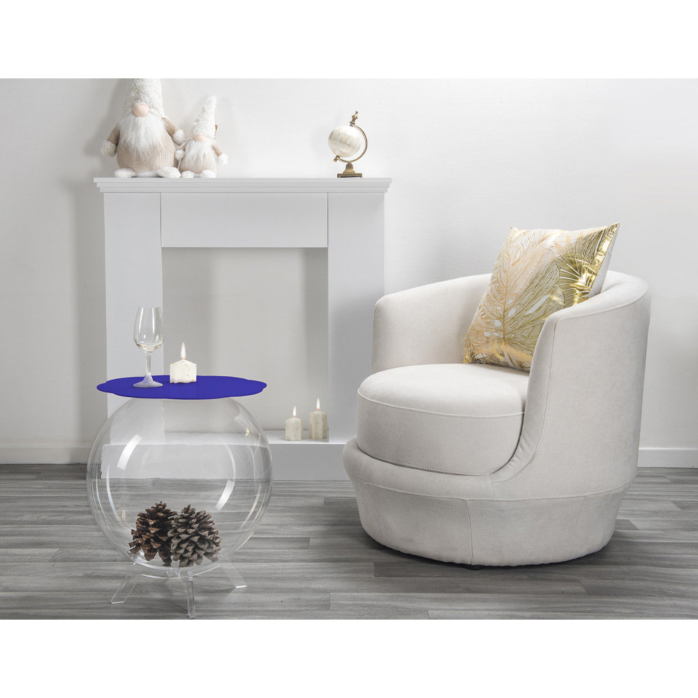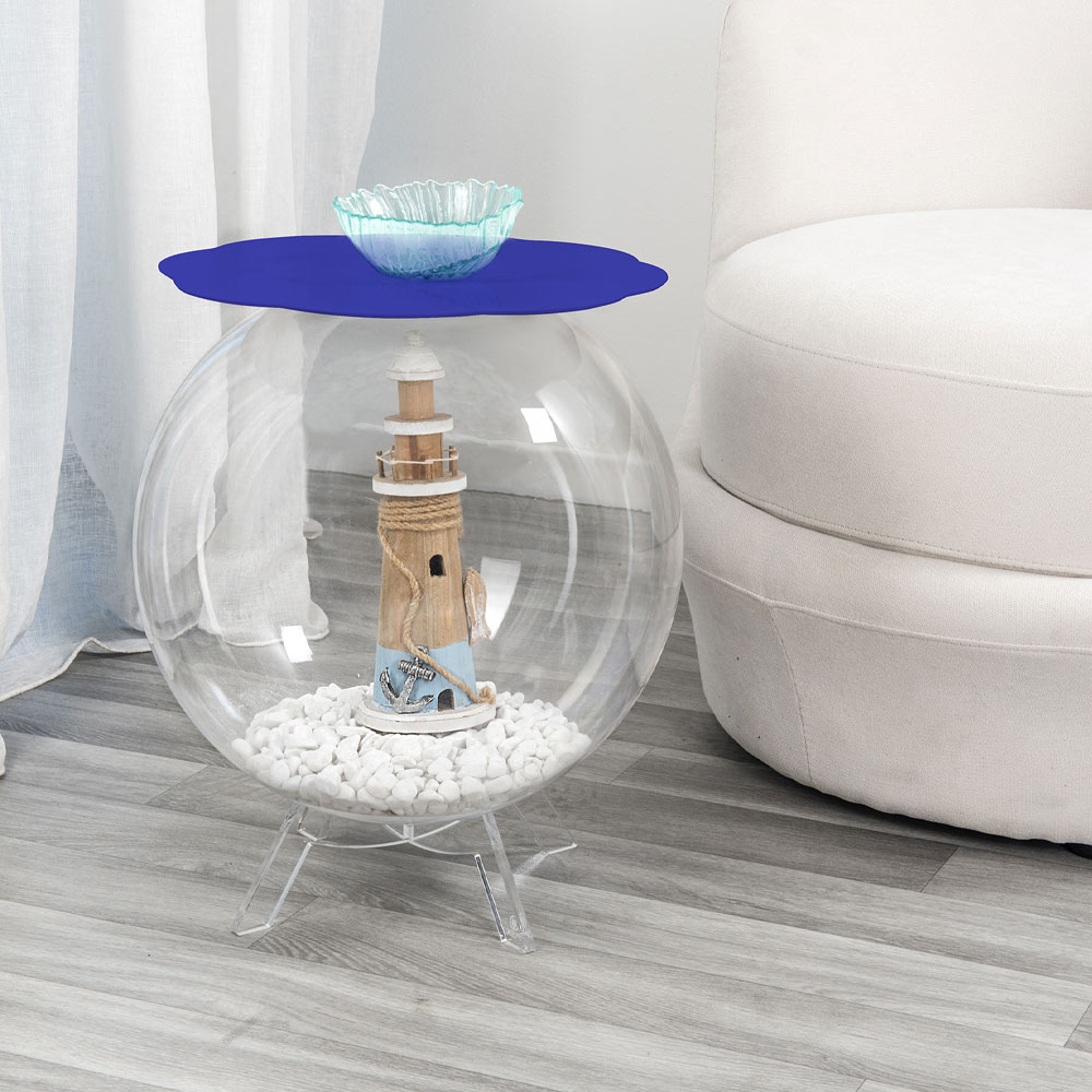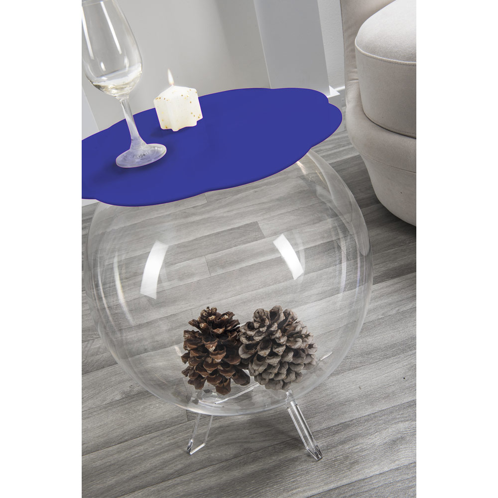 Table d'appoint/de rangement en plexiglas avec structure sphérique qui peut servir de pot pour les fleurs, d'acquarium ou, tout simplement, de boîte pour y ranger les jeux des enfants ou la lingerie. La transparence de Biffy fait de cette table un produit au design discret, facile à placer dans la maison. Le plateau est en plexiglas PMMA bleu de polymère 100% vierge.