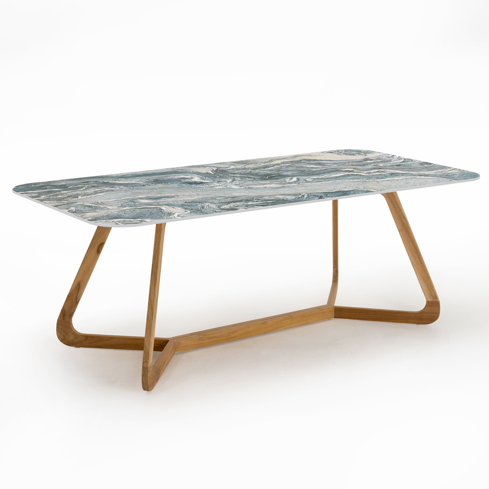 Table de jardin rectangulaire en bois et céramique, fabriquée en Italie