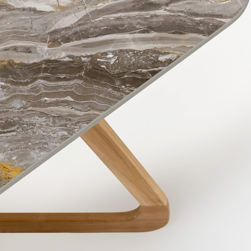 Made in Italy. Cette table d'extérieur est une merveille de design, alliant la robustesse du bois à l'opulence de la céramique, inspirée du marbre Orobico Luxe . Son plateau en céramique, aux nuances de gris et aux veines dorées chatoyantes, reflète la beauté et la complexité des formations rocheuses naturelles, ajoutant une touche de luxe sophistiqué à votre espace extérieur.