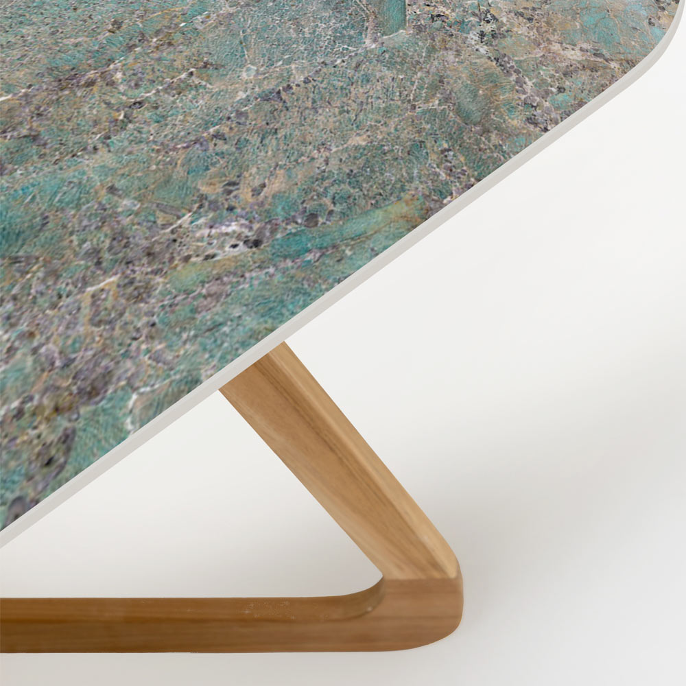 Made in Italy. Cette table d'extérieur exclusive est un véritable bijou de design, alliant l'élégance du bois à la modernité de la céramique. Son plateau, en céramique de haute qualité d'une superbe teinte vert antique , offre une résistance exceptionnelle aux intempéries et une beauté durable.