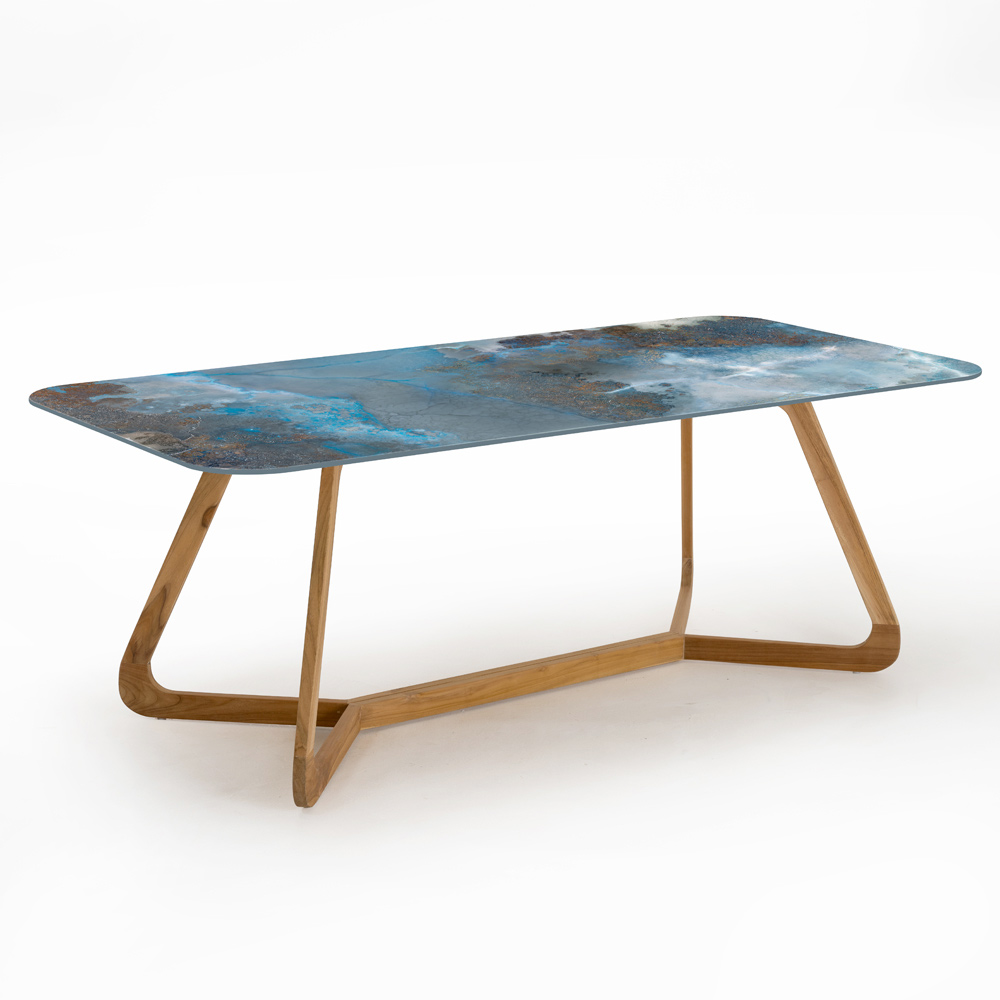 Table de jardin rectangulaire en bois et céramique, fabriquée en Italie