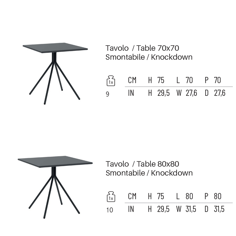 Table de jardin carrée avec structure en acier galvanisé 100 % fabriquée en Italie