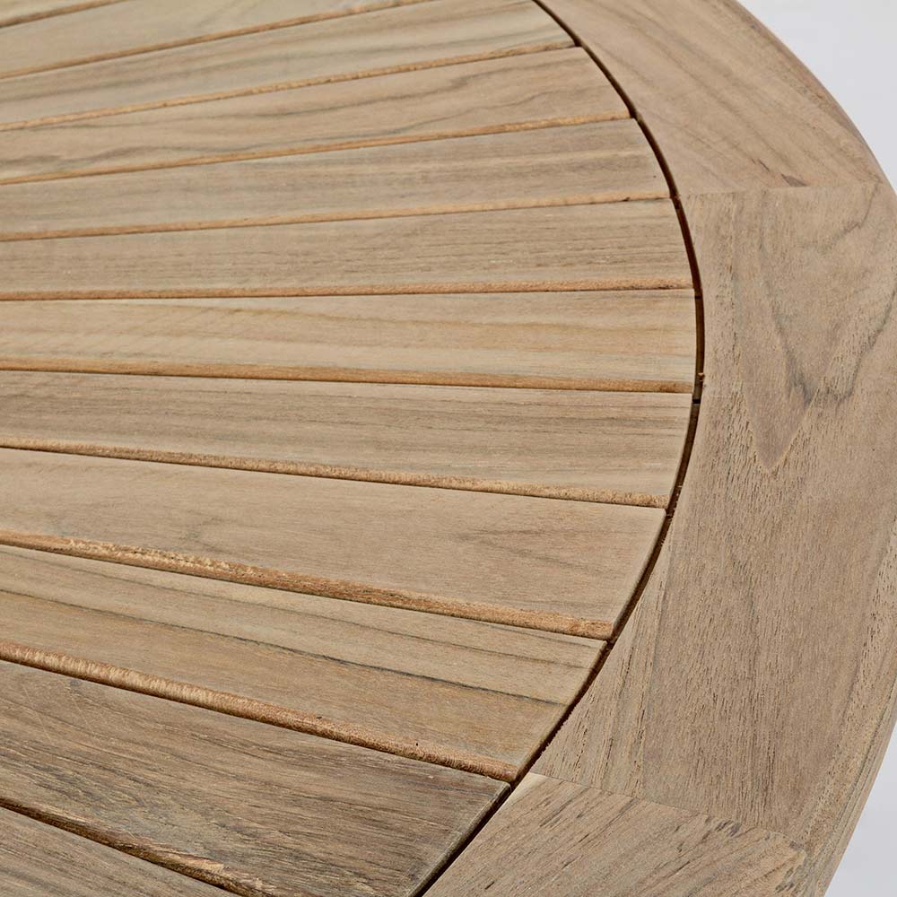 Structure en bois de teck (classe A) - SLVK (bois certifié issu de forêts durables). Dessus pivotant central. Quincaillerie en acier galvanisé. Jambes à assembler.