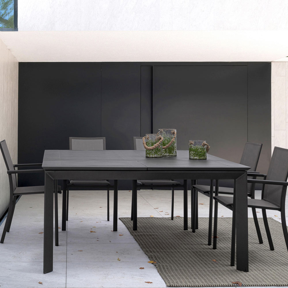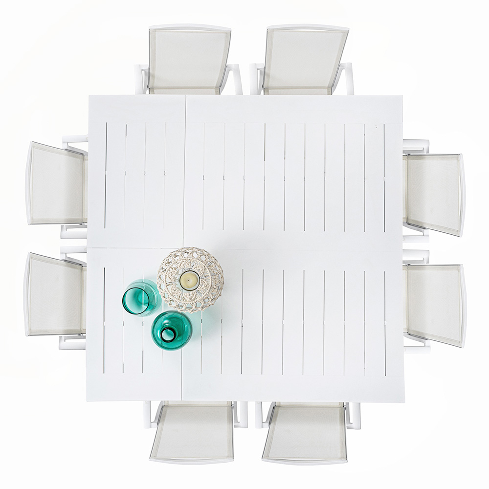 Table à manger d'extérieur extensible en aluminium peint de haute qualité.