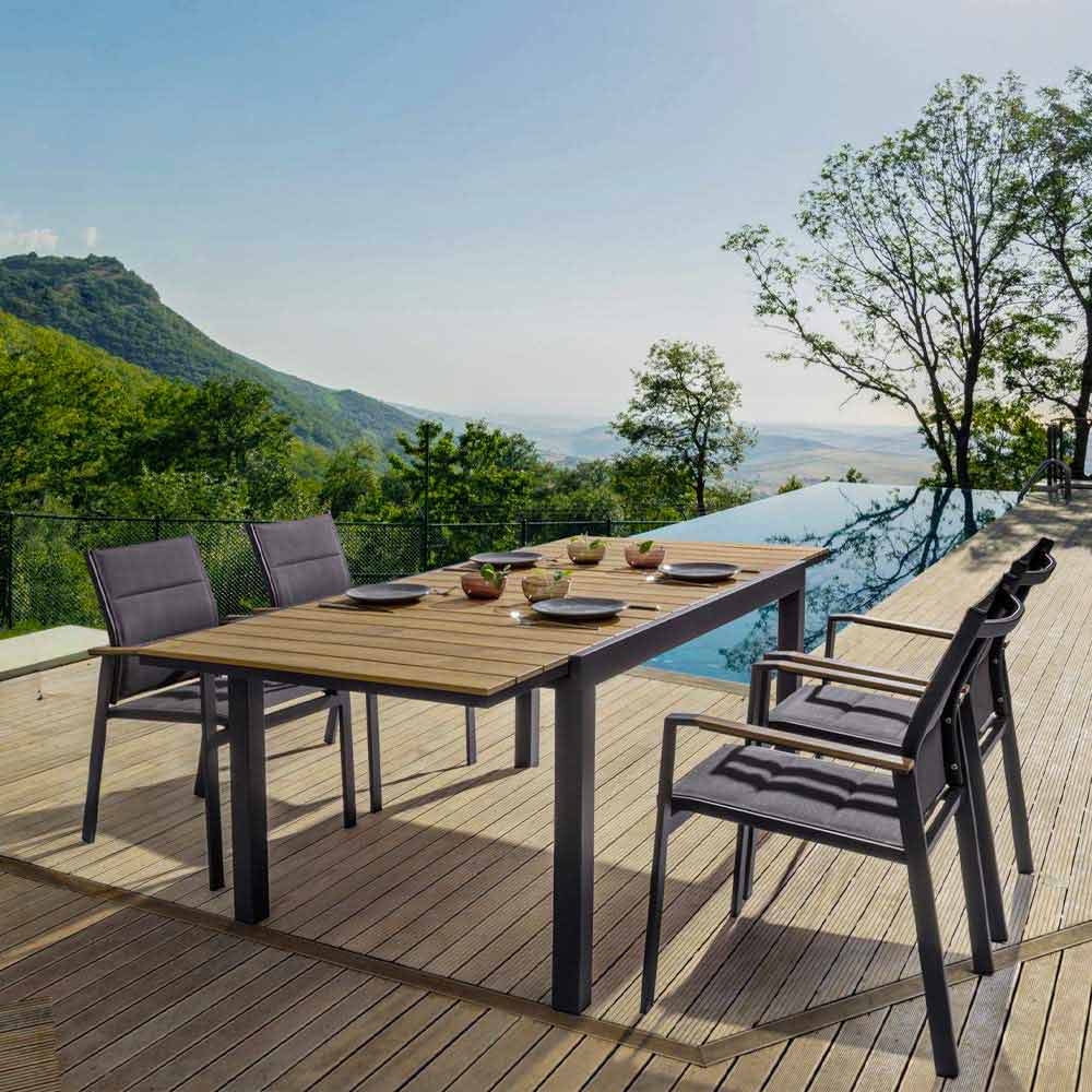Table d'extérieur extensible jusqu'à 200 cm avec plateau en teck - Finition Bobel