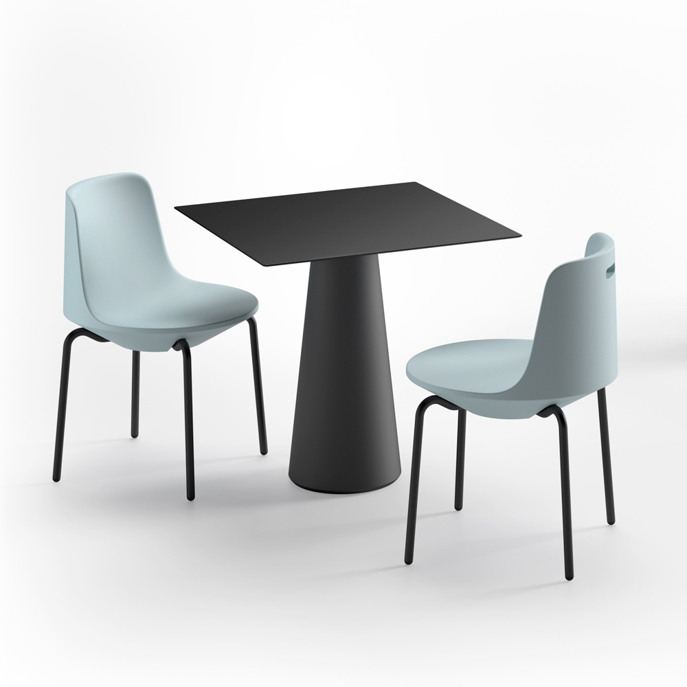Cette table d'extérieur est composée d'un plateau en HPL et d'une base en polyéthylène mate qui offre une résistance à la chaleur, aux chocs et au soleil, ce qui en fait le produit idéal pour un usage externe.