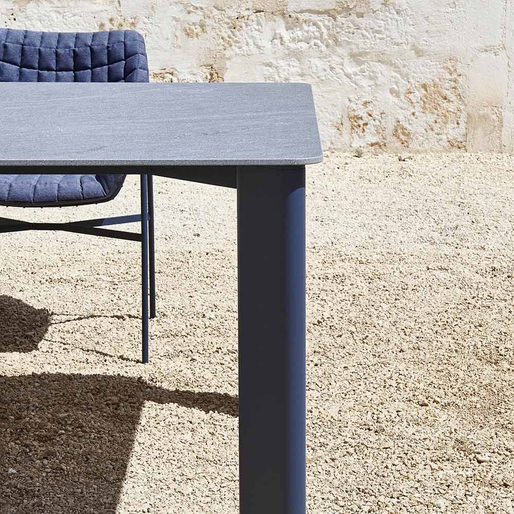 Table de jardin en aluminium avec plateau en hpl ou en céramique bouchardée Made in Italy.