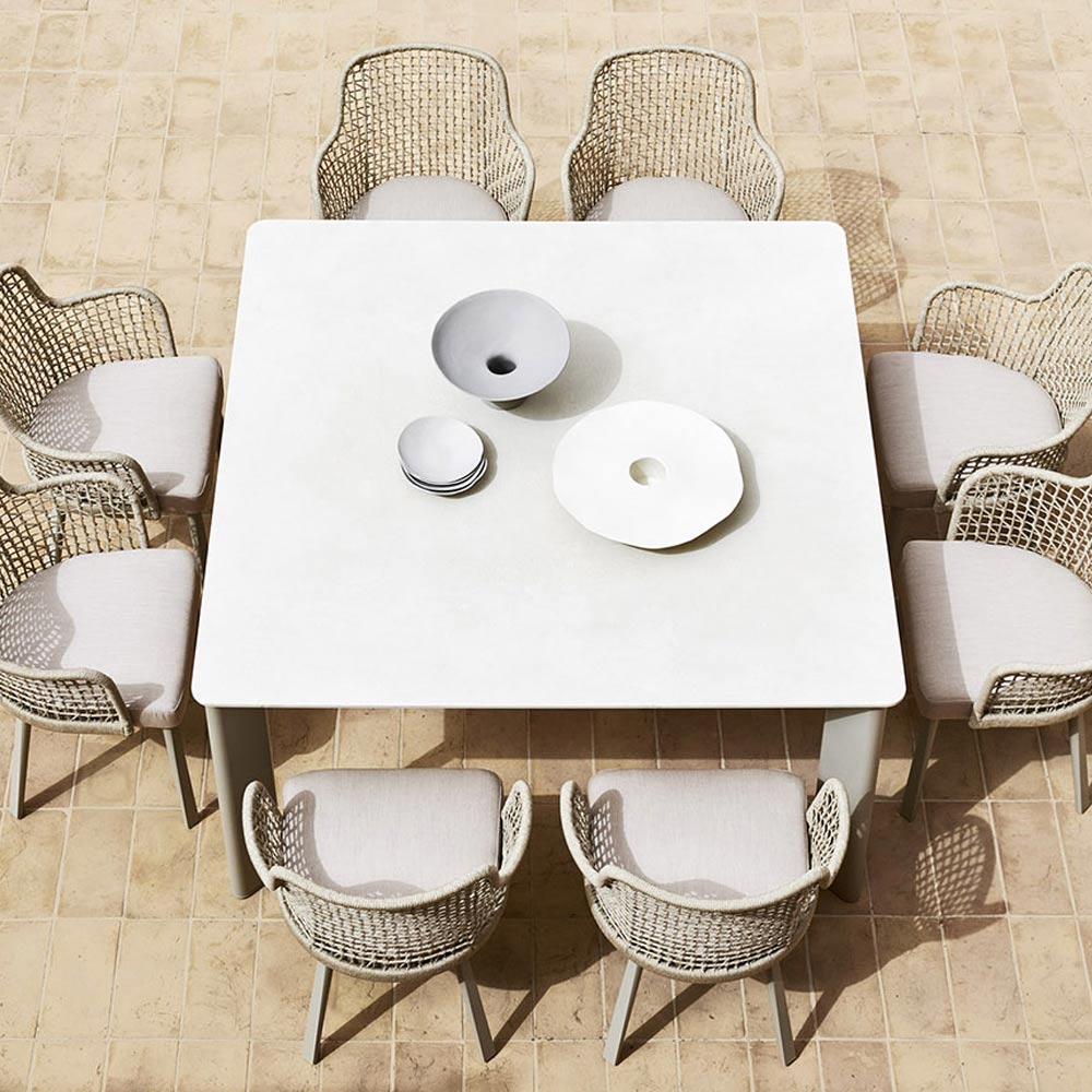 Table à manger d'extérieur entièrement fabriquée en Italie de forme carrée avec structure en aluminium thermolaqué et plateau en hpl ou céramique bouchardée, disponible en deux tailles différentes .Grâce à son style essentiel, polyvalent et moderne, cette table est parfaite pour compléter l'ameublement de divers espaces de vie, à l'intérieur comme à l'extérieur, en enrichissant l'esthétique de l'environnement avec une touche de personnalité.