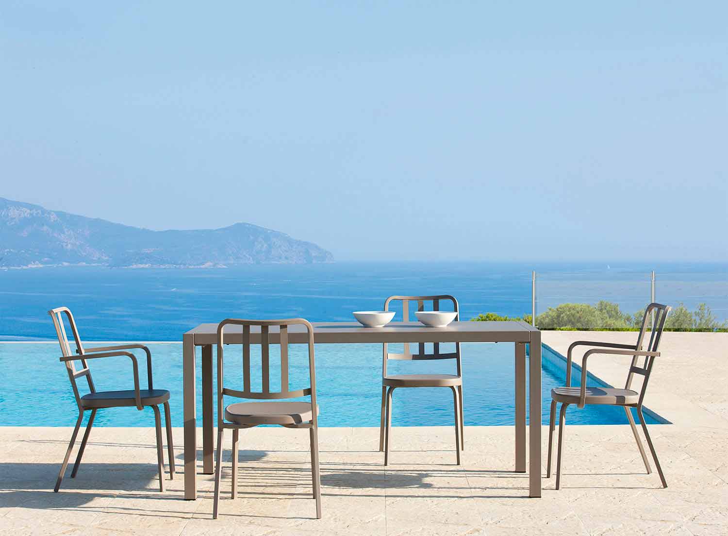 Cette ligne de produits recrée un type de design à mi-chemin entre rétro et futuriste, grâce aux lignes légères et délicates de ses produits où chacun d'eux peut être facilement combiné avec les styles d'ameublement les plus variés, du plus classique au plus contemporain. Fabriqués en Italie avec des techniques innovantes et des matières premières de haute qualité, ces produits destinés à l'ameublement d'environnements extérieurs tels que jardins et terrasses mais aussi bars et restaurants, assurent une excellente robustesse et donc une excellente durabilité dans le temps tout en conservant intacte la vivacité des couleurs.