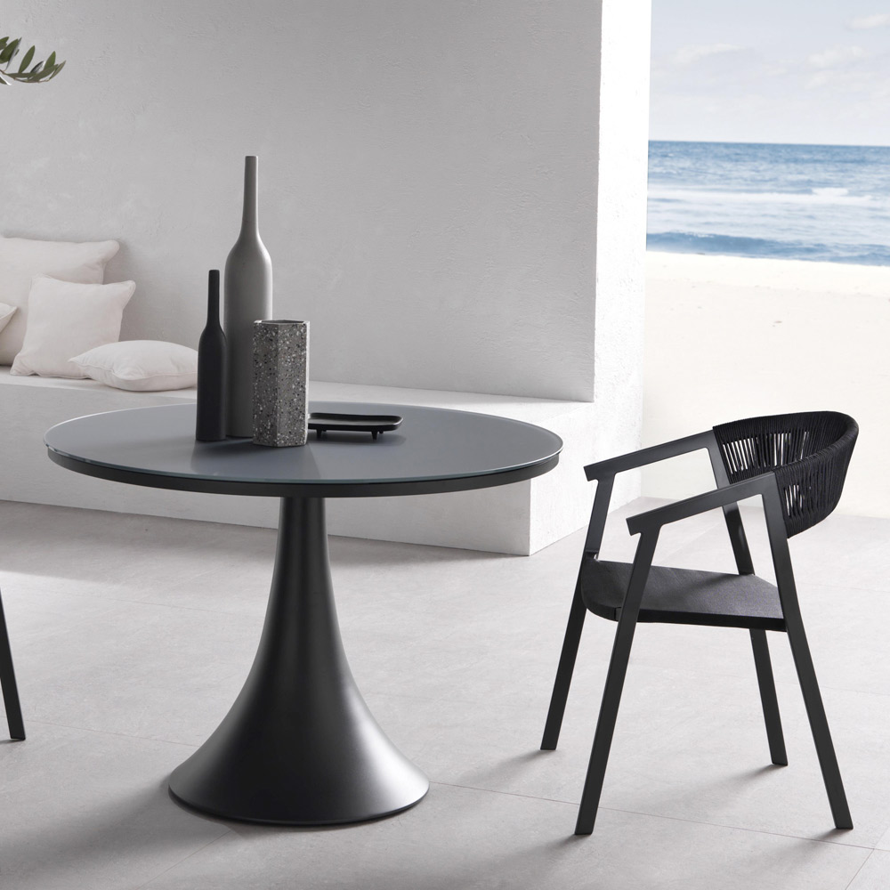 Table d'extérieur ronde en aluminium thermolaqué et verre - Arcade