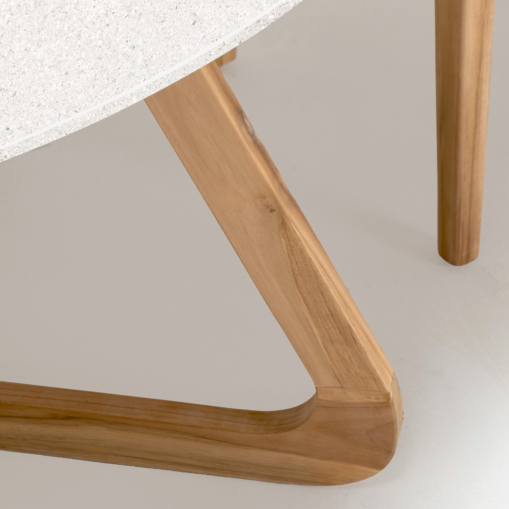 Le piètement en bois s'harmonise harmonieusement avec le plateau en céramique moderne, alliant chaleur naturelle et design moderne. Cette composition est non seulement esthétique , mais garantit également stabilité et durabilité grâce à des matériaux de haute qualité choisis pour résister aux intempéries.