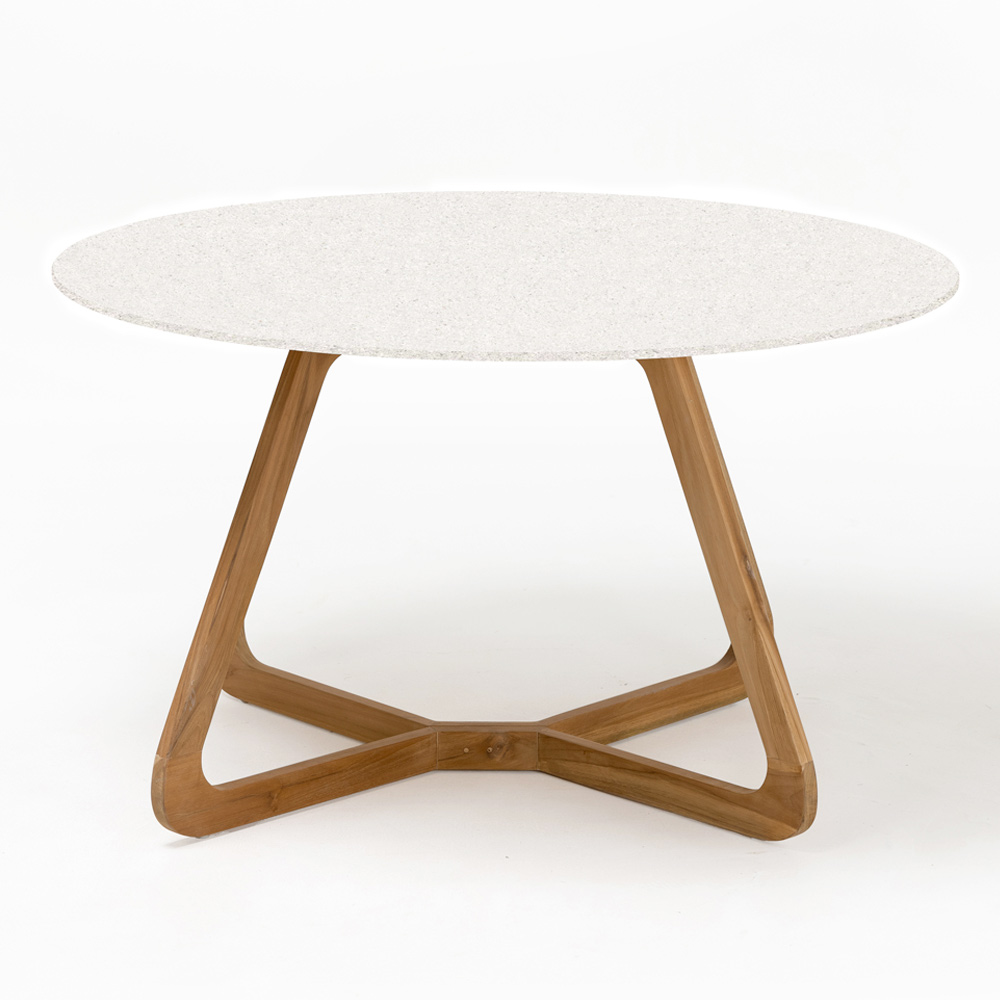 Table de jardin ronde en bois et céramique, fabriquée en Italie