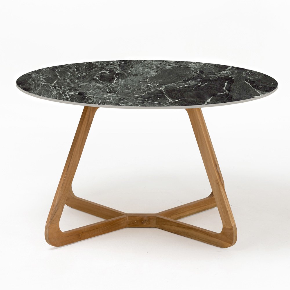 Table de jardin ronde en bois et céramique, fabriquée en Italie