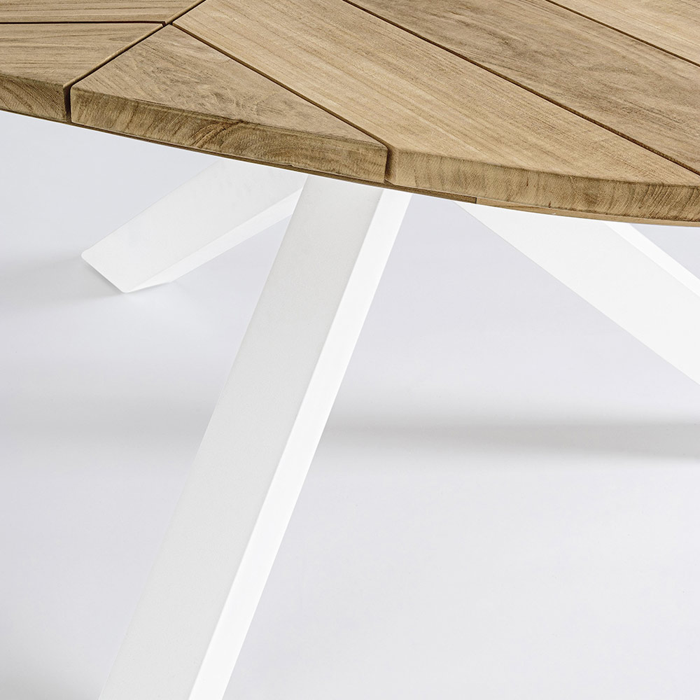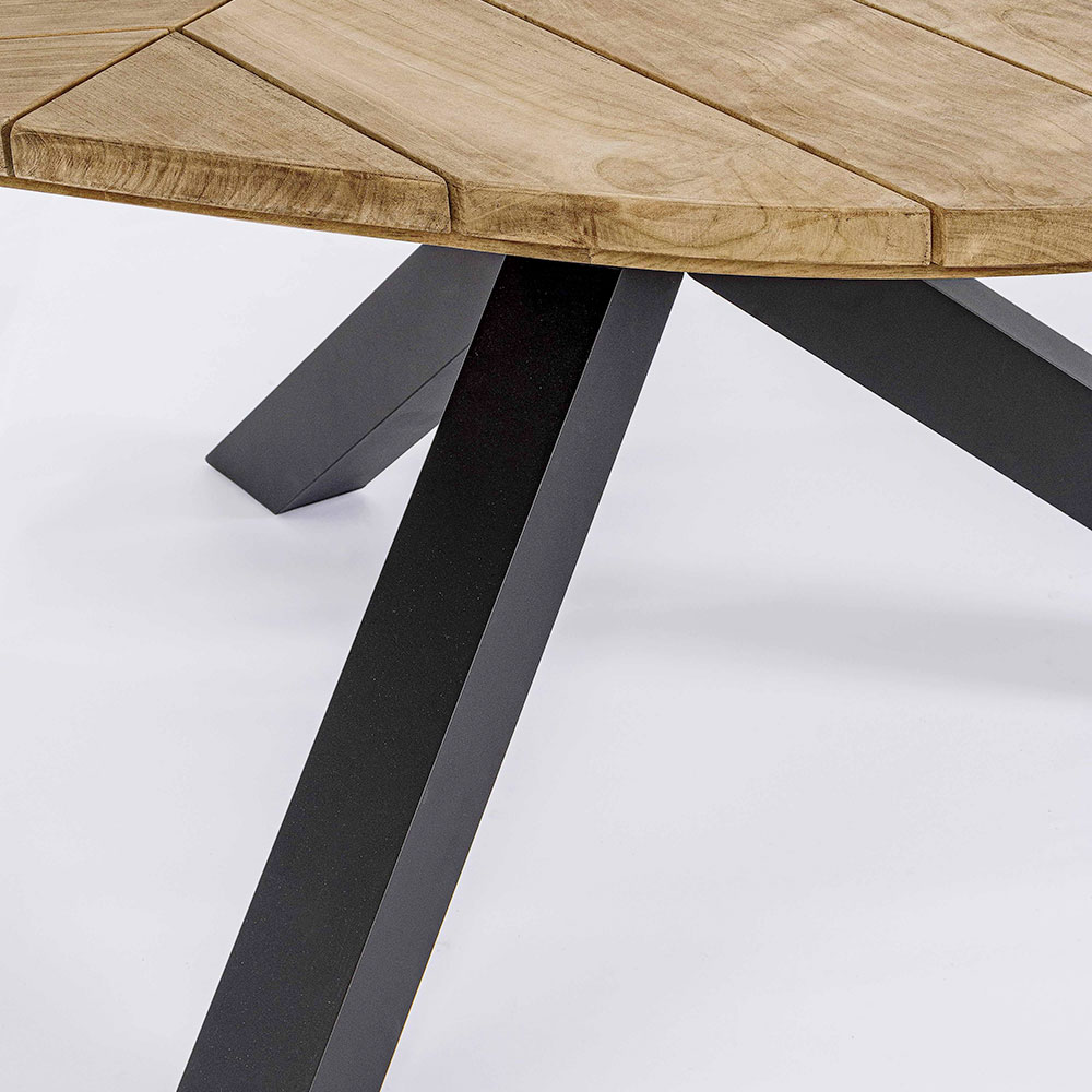Table d'extérieur ronde en teck avec base en aluminium, Homemotion - Selenia