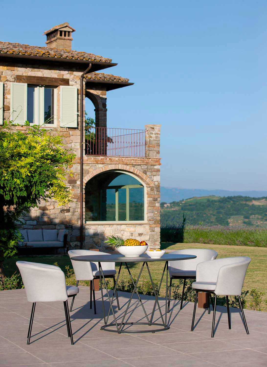 Table d'extérieur ronde avec structure en fer galvanisé thermolaqué et thermodurcissable, idéale pour conférer solidité et résistance à toutes les conditions climatiques, tout en conservant des couleurs et des finitions éclatantes. Caractérisée par un design innovant et raffiné, elle est l'élément idéal pour apporter caractère et modernité à tout environnement, sans jamais négliger l'aspect fonctionnel et pratique. Idéale pour meubler des espaces privés tels que des jardins, mais aussi des bars et des restaurants.