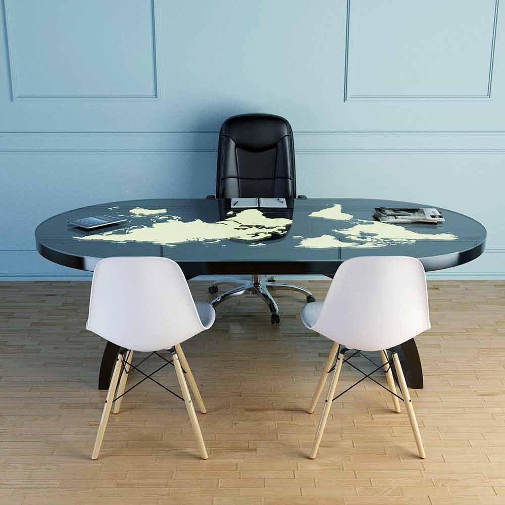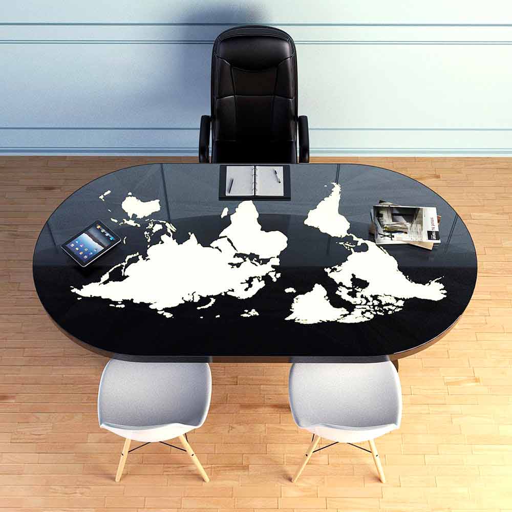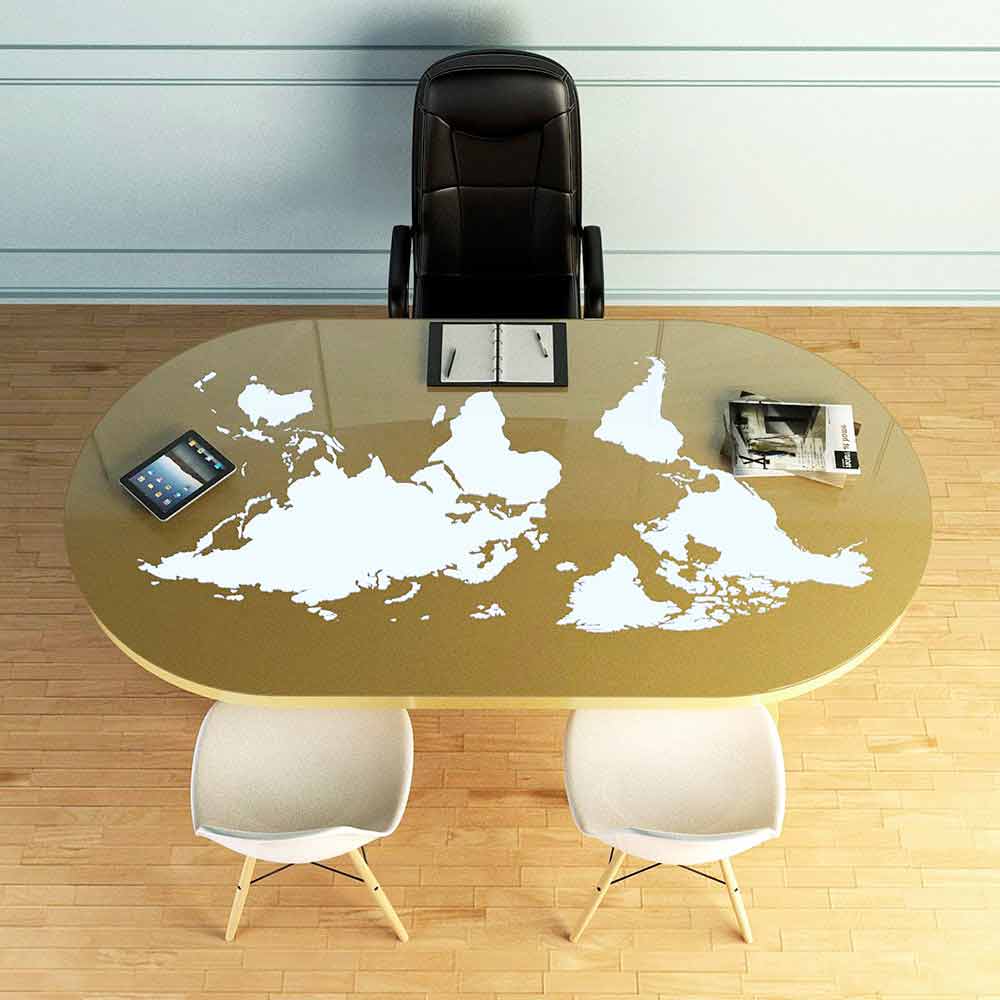 Pontida est une table de bureau au design ultra-moderne ; réalisé en Solid Surface® et plateau en verre où est représenté le monde entier qui, grâce à la présence de LED, s'éclaire et change de couleur à votre guise. Précisez lors de la commande si vous préférez un interrupteur ou une télécommande pour gérer la lumière.