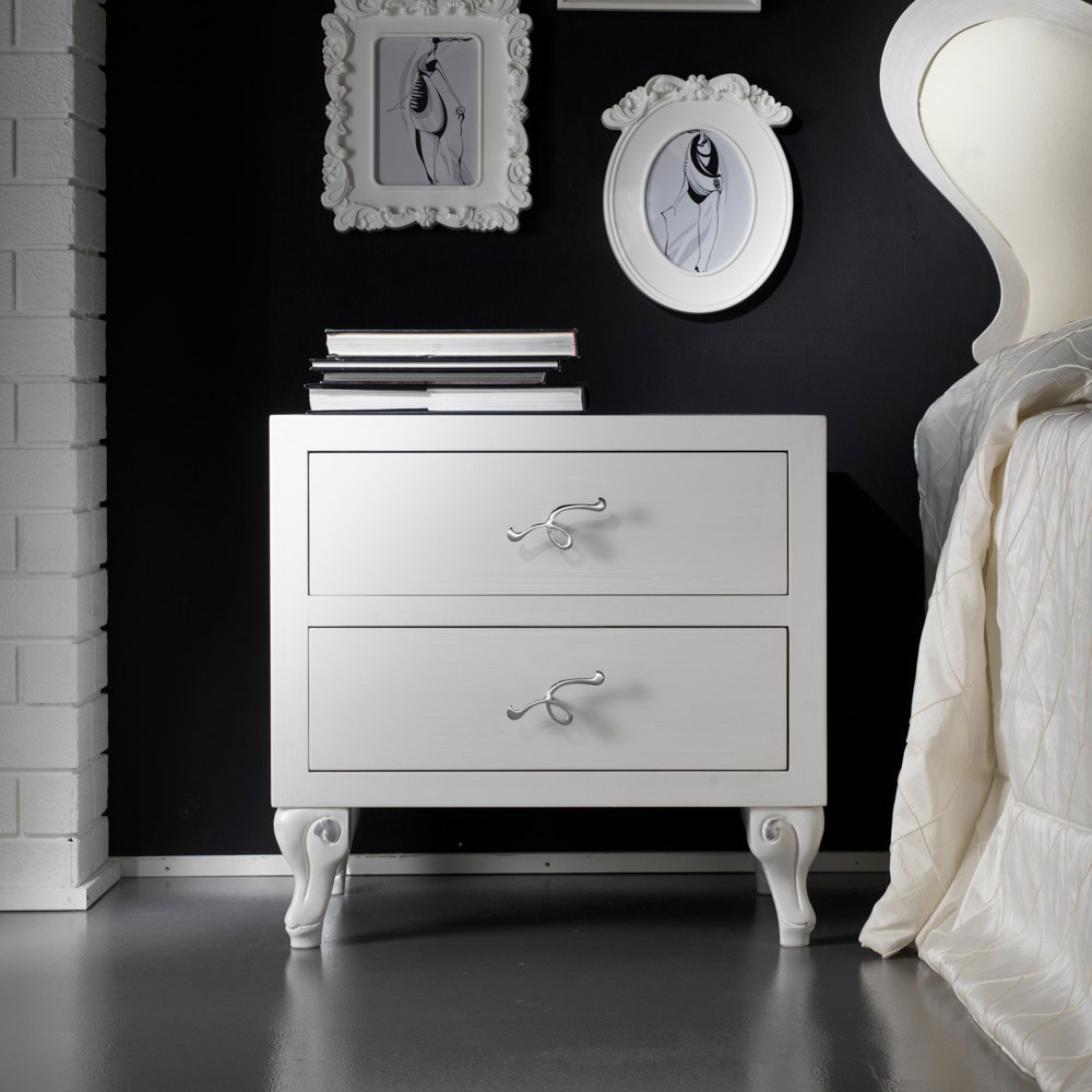 Table de chevet réalisée en latté de Tilleul avec finition artisanale en nacre et guides rembourrés, composée de 2 tiroirs. Grâce à ses finitions et à ses lignes douces et sinueuses , il possède tout le charme d'un style classique et élégant et constitue l'élément parfait pour compléter et personnaliser votre environnement. La fonctionnalité et la capacité sont garanties par les tiroirs qui accueillent soigneusement divers objets et par la surface sur laquelle placer les objets utiles. L' attention aux détails et le choix des meilleurs matériaux par des artisans italiens qualifiés garantissent la qualité du Made in Italy.