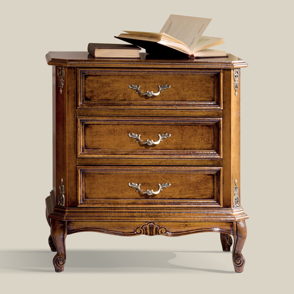 Table de chevet de style classique adaptée pour s'intégrer avec élégance dans la chambre à coucher ou dans le salon, créant une atmosphère raffinée et efficace. Il est fabriqué en bois de noyer Bassano et dispose de 3 tiroirs pratiques. Entièrement fabriqué en Italie et fabriqué à la main par des maîtres artisans qualifiés , fini avec sagesse et goût pour l'élégance. La production est réalisée en utilisant des matériaux nobles et en réalisant le travailà la main avec le plus grand soin et le professionnalisme qui distinguent les produits Made in Italy .