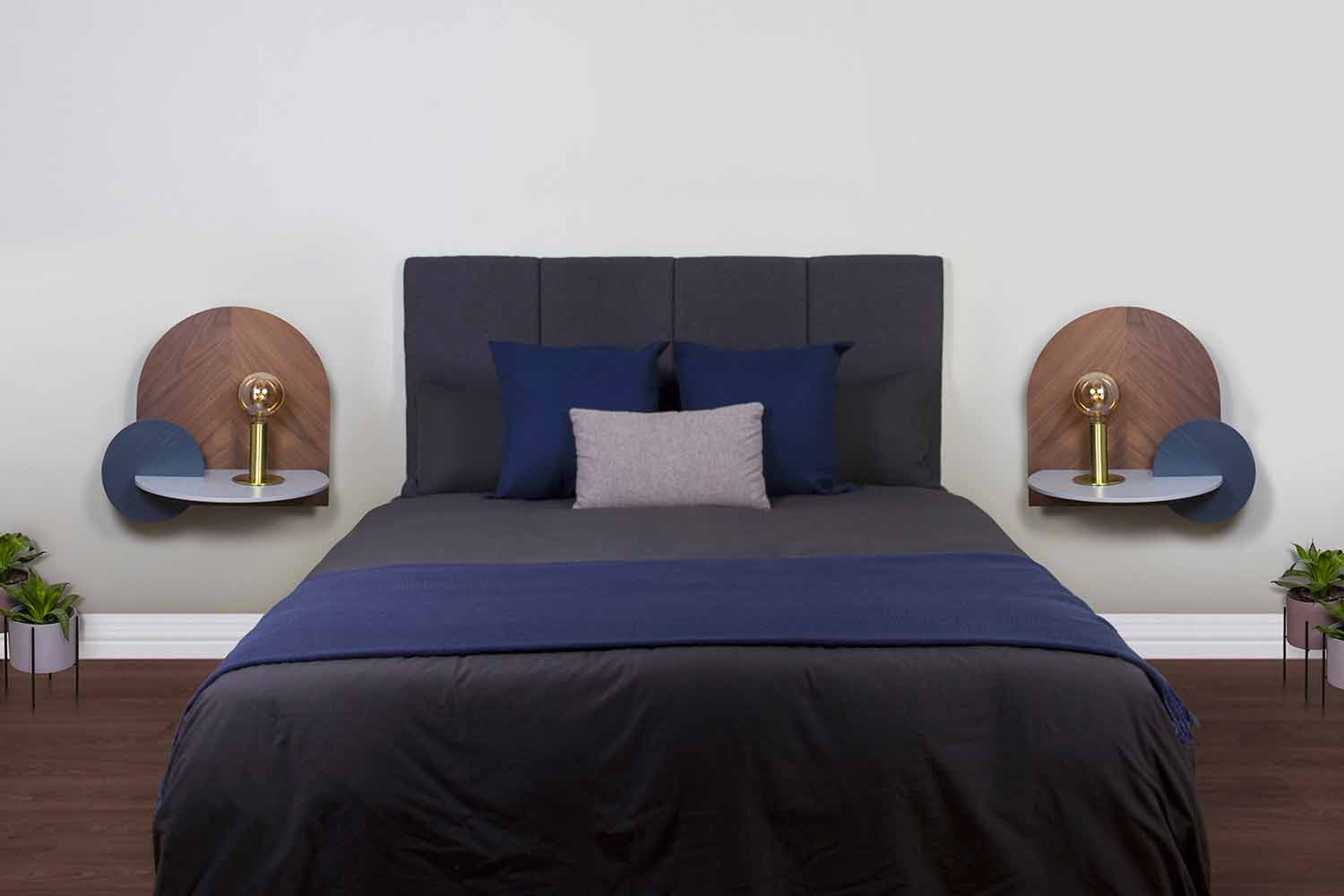 La table de chevet est l'un des éléments les plus importants de toute chambre à coucher et il est nécessaire que la structure allie fonctionnalité et aspect décoratif et design. Cette table de chevet modulable représente une idée innovante et originale capable de conquérir toutes les attentions à l'intérieur de la pièce grâce à son style unique et à la combinaison de matériaux et de finitions qui donnent l' élégance et un design extrêmement moderne . Sa structure est composée de 3 panneaux de contreplaqué , un en finition bois de noyer et deux en finition frêne peint bleu et gris . Le panneau qui agit comme une véritable surface d'appui est fixé au mur et les 2 panneaux modulaires sont montés dessus, qui peuvent être positionnés dans 8 configurations différentes, obtenant ainsi un produit personnalisable en fonction des besoins et des espaces. La structure a également un trou de câble placé derrière le panneau avant, leur permettant d'être caché et rendant la table de chevet encore plus fonctionnelle et pratique. Entre les panneaux verticaux et le mur, il y a un compartiment de 9 cm qui peut être utilisé pour stocker et organiser des livres et des magazines ou tout autre objet, en optimisant au mieux l'espace disponible. Facile et rapide à nettoyer à l'aide d'un simple chiffon humide.