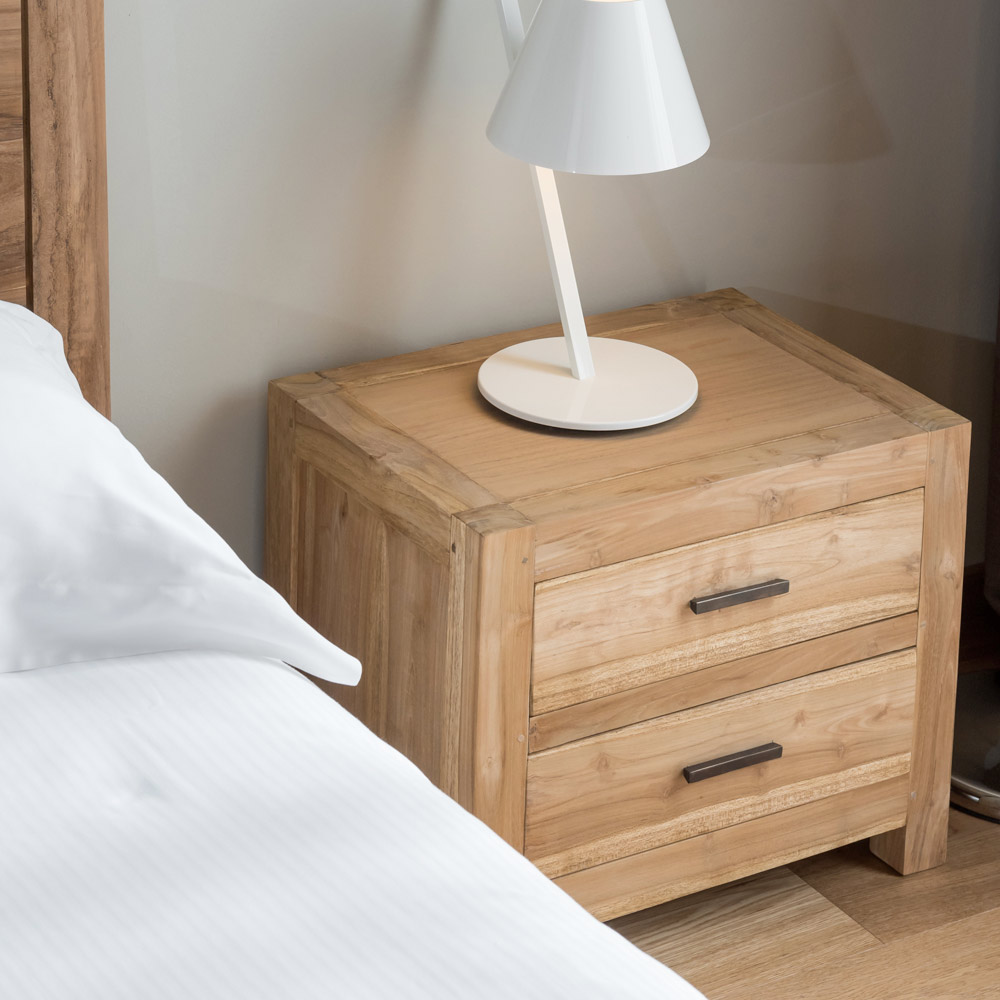 Cette table de chevet en teck massif est un meuble compact et élégant, idéal pour compléter votre chambre avec un style naturel et intemporel. Son travail artisanal et le grain naturel du bois lui confèrent un aspect chaleureux et authentique.
