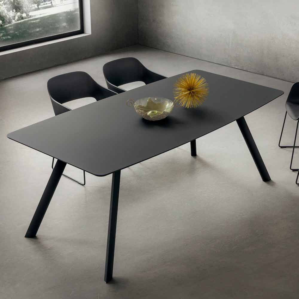 Table à manger en fenix stratifié et aluminium brossé Made in Italy.