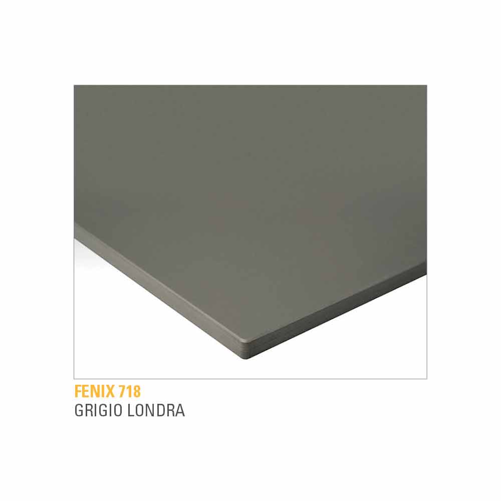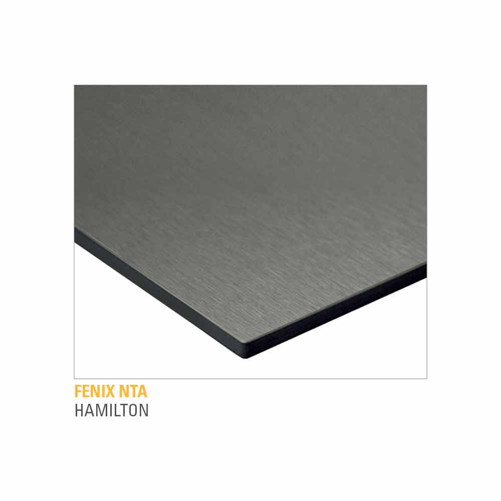 en fenix stratifié (épaisseur 10 mm) équipé d'un support en mdf (épaisseur 22 mm) et pieds en