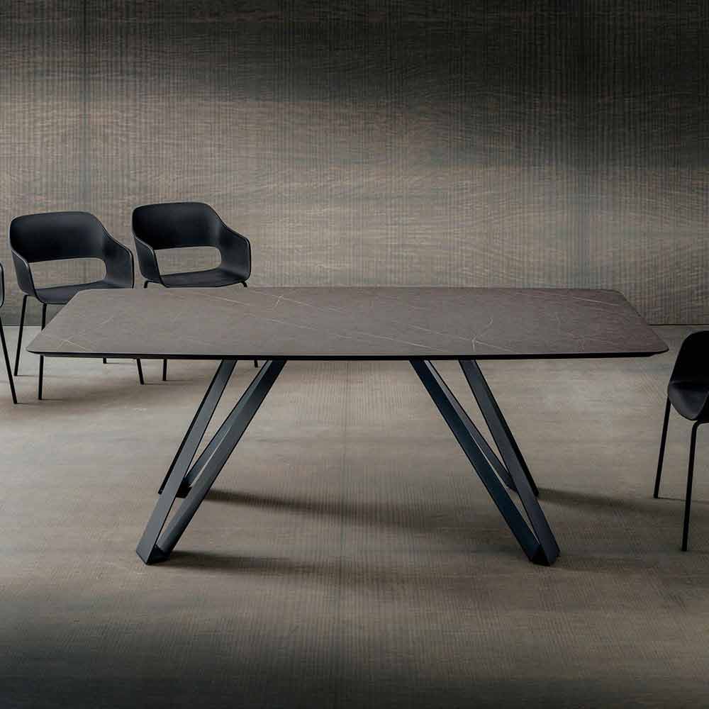 Table à manger en hpl stratifié et métal anthracite Made in Italy, de haute qualité.
